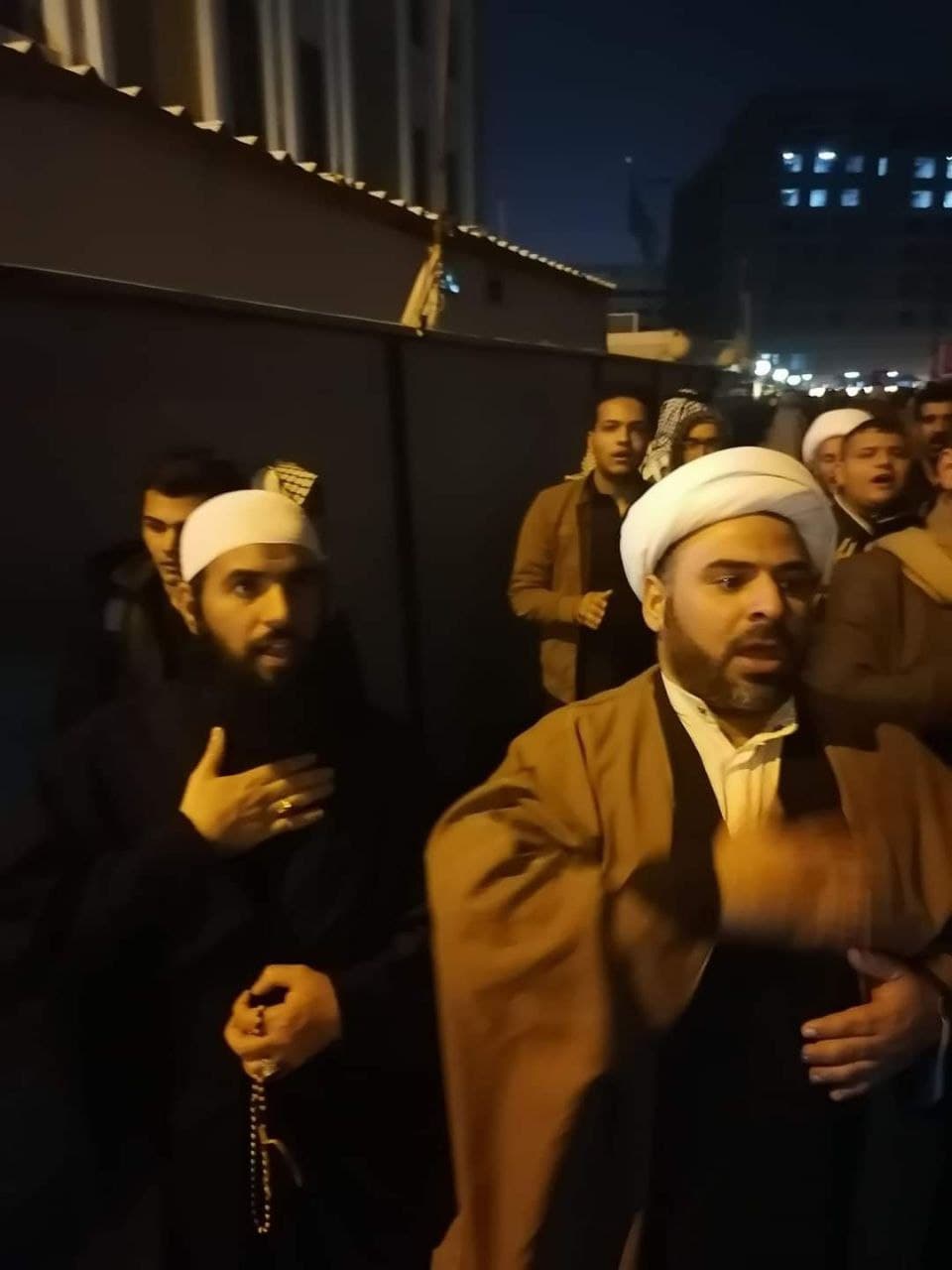 وحمل المشيعون النعش الرمزي مع حمل الرايات الفاطمية والشعارات والهتافات المفجعة والمؤلمة التي تبين مظلوميتها”.
