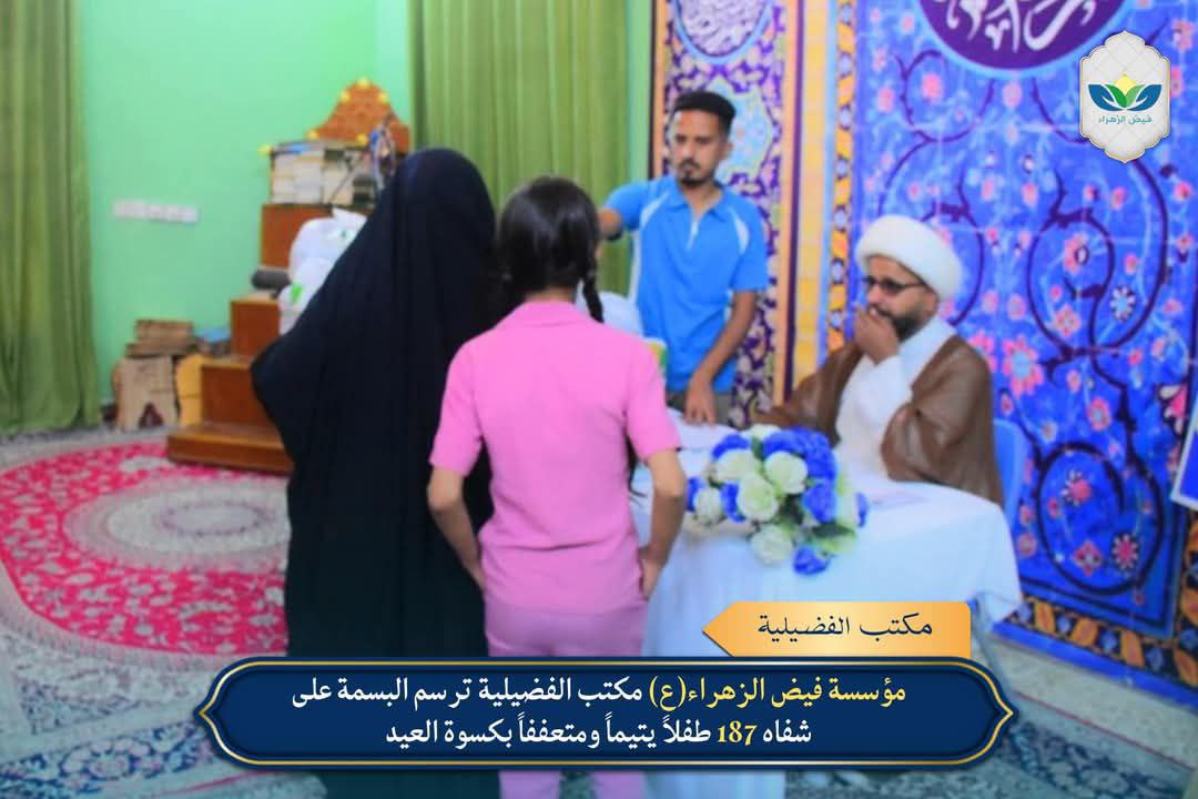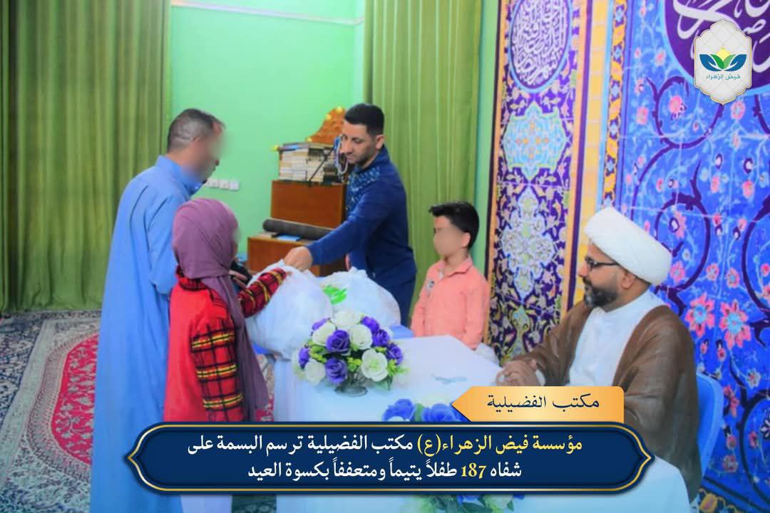 وزع مكتب مؤسسة فيض الزهراء (ع) في بغداد/الفضيلية، كسوة العيد على 187 طفلاً يتيماً ومتعففاً، ضمن حملة الإمام الحسن (ع) فرحة يتيم.