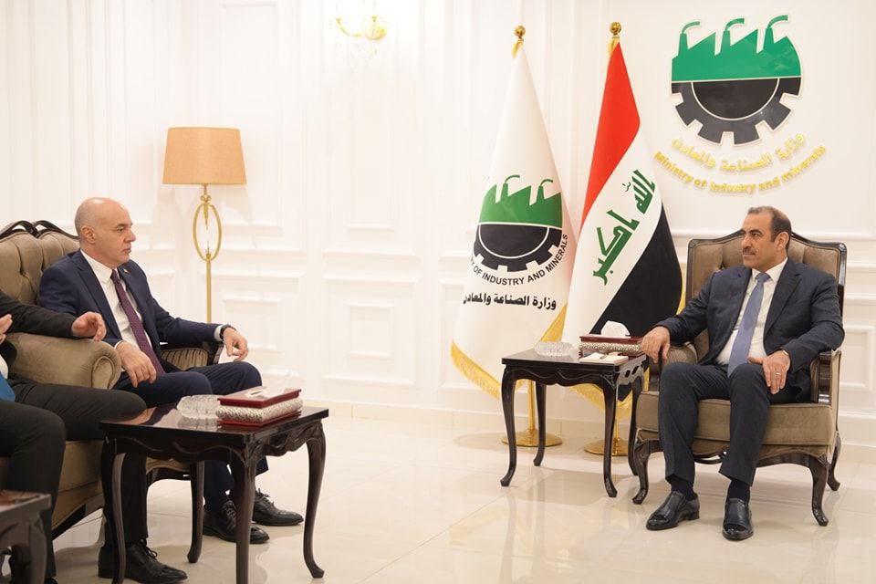 وذكر بيان لوزارة الصناعة، تلقت “النعيم نيوز” نسخة منه، أن “وزير الصناعة والمعادن خالد بتّال النجم، التقى اليوم، بالسفير التُركي لدى العراق علي رضـا كوناي، للتباحُث حول فُرص التعاون والشراكة في قطاع الصناعة بِشقيه العام والخاص، وخاصةً في مشاريع المُدن الصناعية وصناعات الزُجاج والسيراميك”.