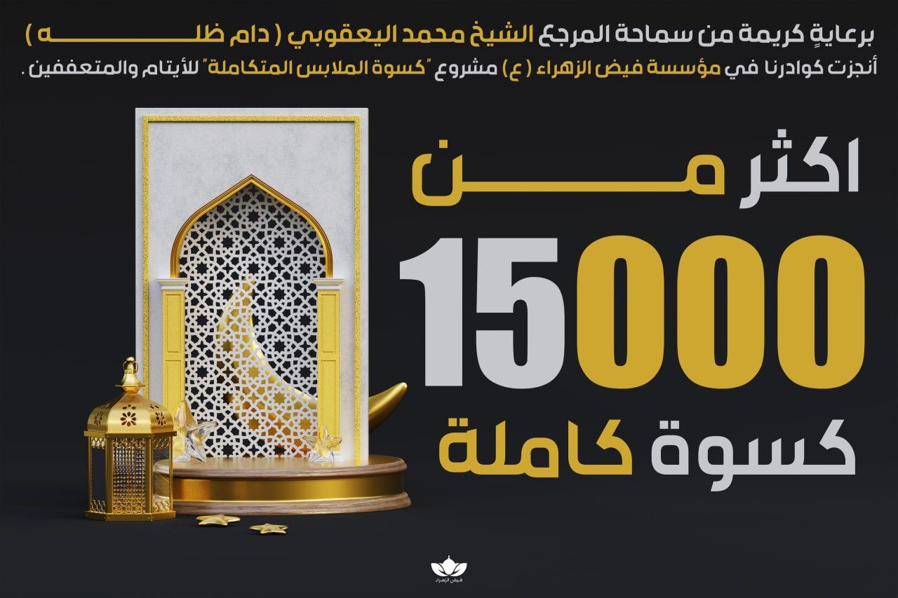 أعلنت مؤسسة فيض الزهراء (ع)، عن إتمام مشروعها السنوي لتوزيع كسوة العيد الكاملة، وذلك بمناسبة حلول عيد الفطر المبارك لعام 1447 هـ.