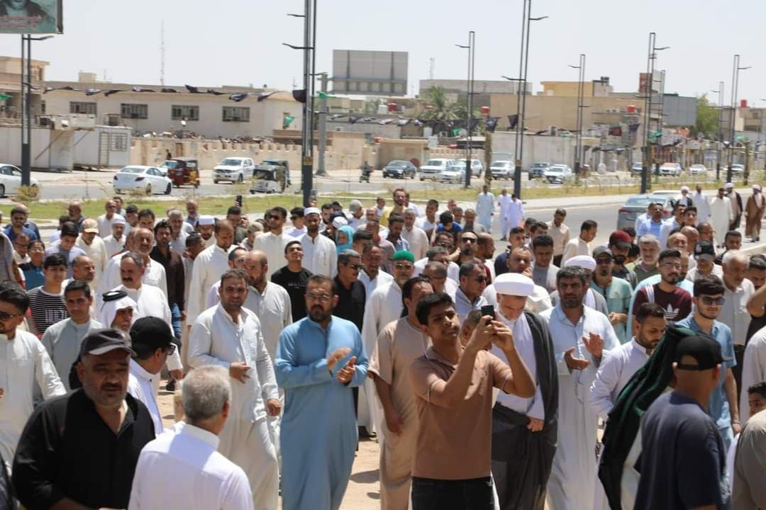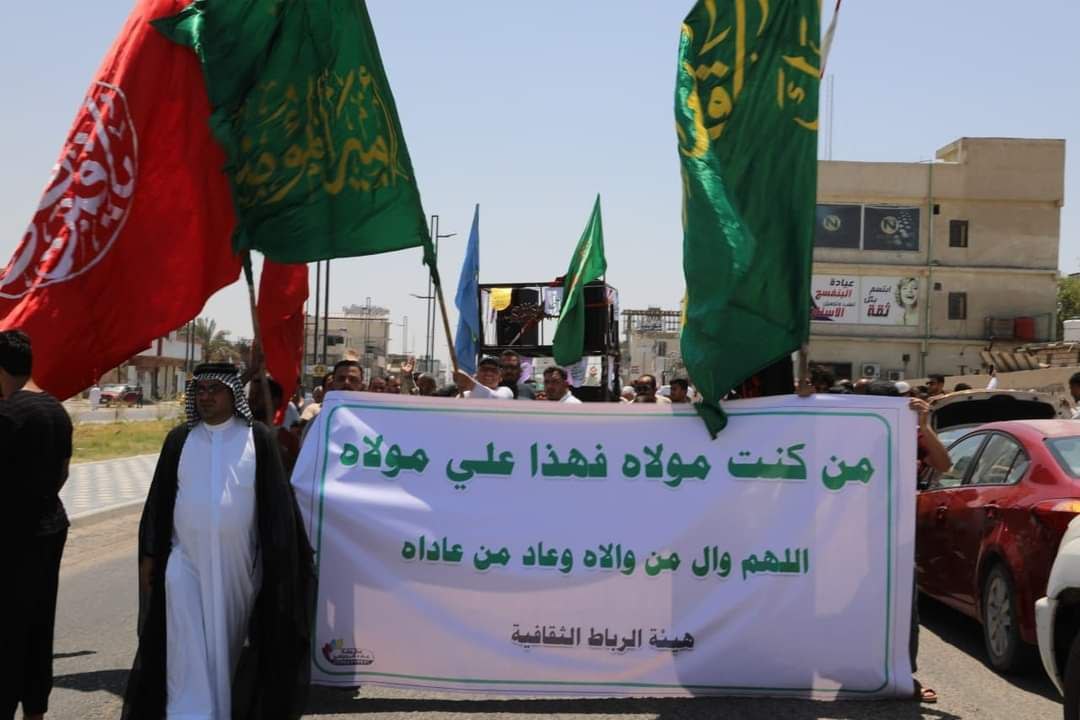 ‘بمشاركة جمع من المؤمنين الرساليين‘.. مكتب المرجعية في البصرة يرفع راية الغدير المباركة