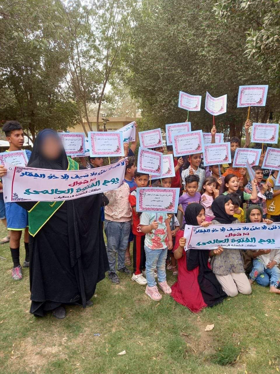 مجمع المبلغات الرساليات في الشعلة يقيم المخيم الثقافي بمناسبة يوم الفتوة العالمي في متنزه الشعلة الأولى.