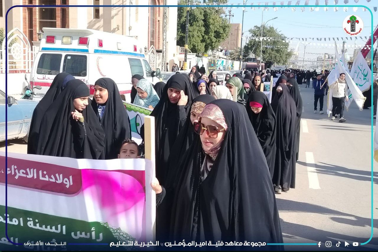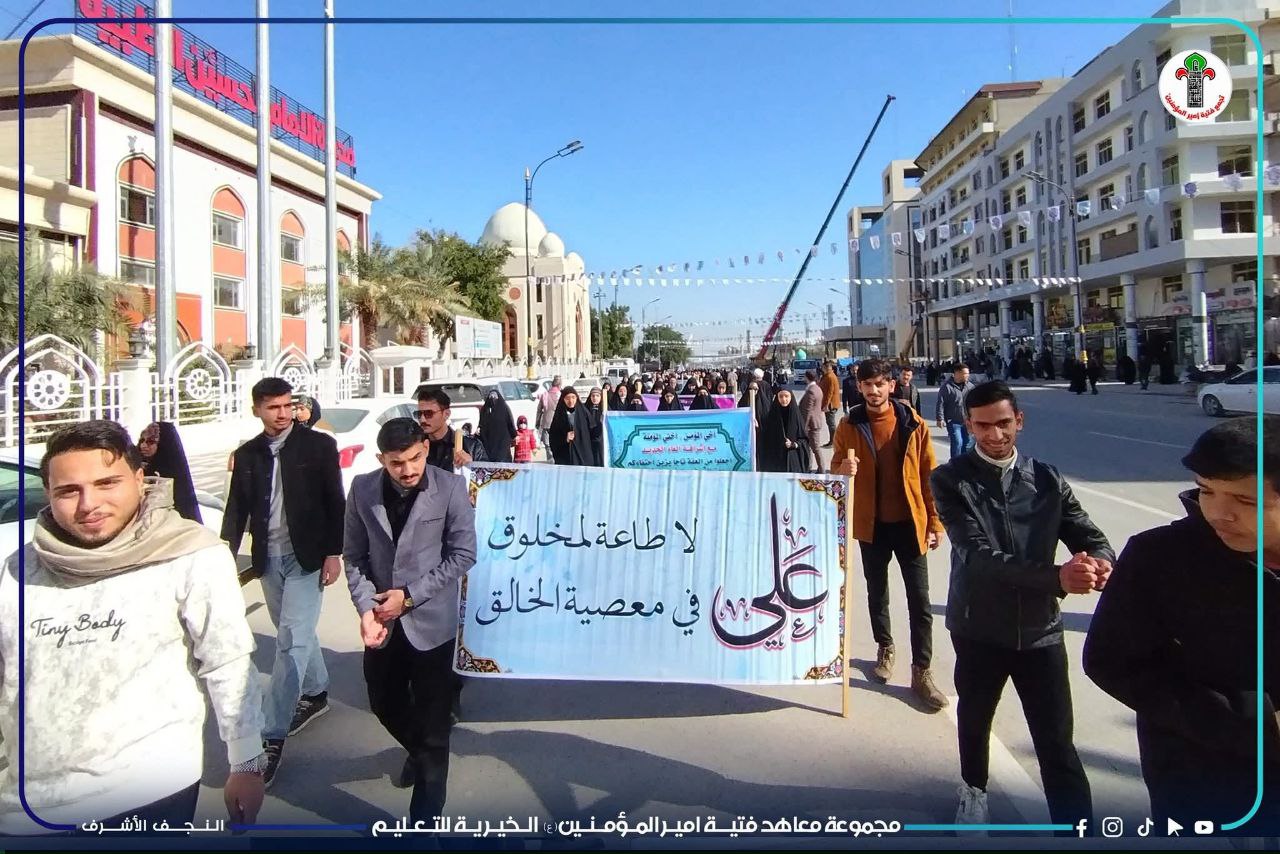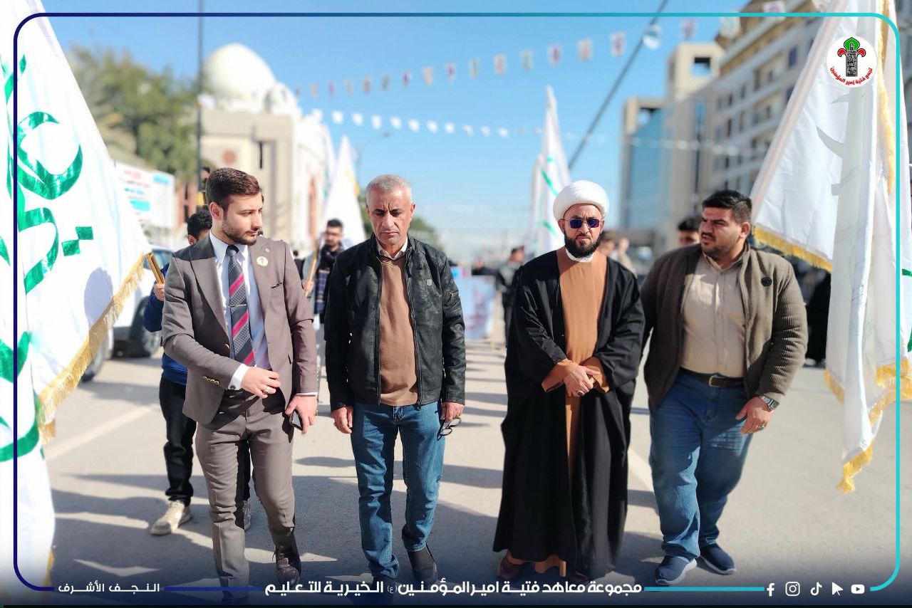 ولفت البيان، إلى أن “المسيرة انطلقت من قرب مسجد الشاكري باتجاه مرقد أمير المؤمنين (ع)، وانتهت بوصول المشاركين إلى ساحة الميدان، قبل أن يتوجهوا لزيارة المرقد الطاهر، وسط أجواء إيمانية سادها الخشوع والولاء”.