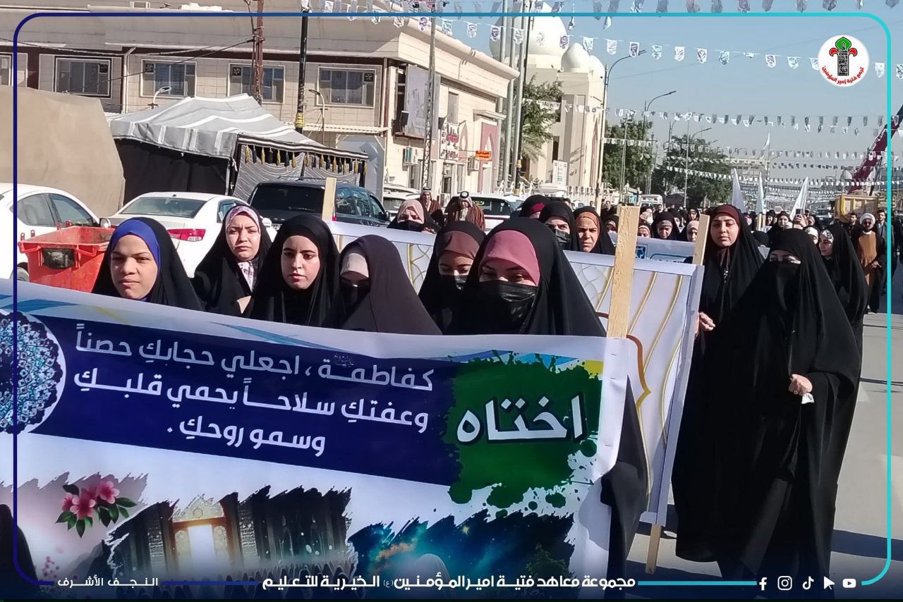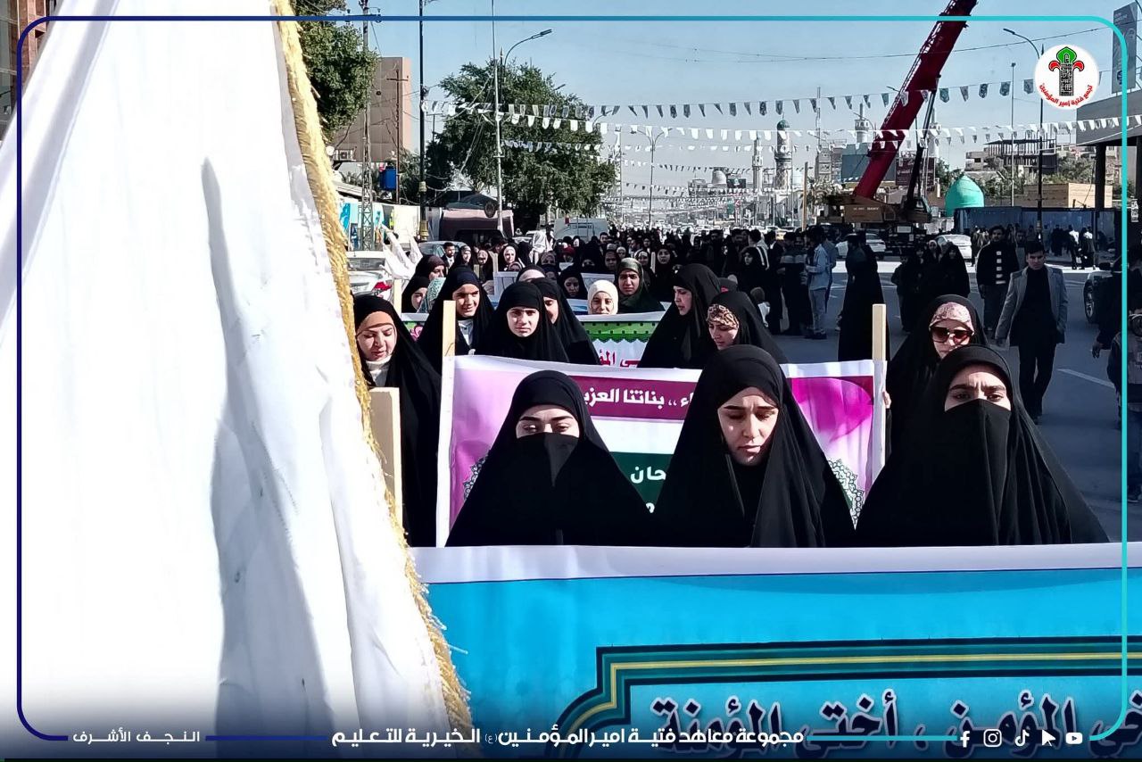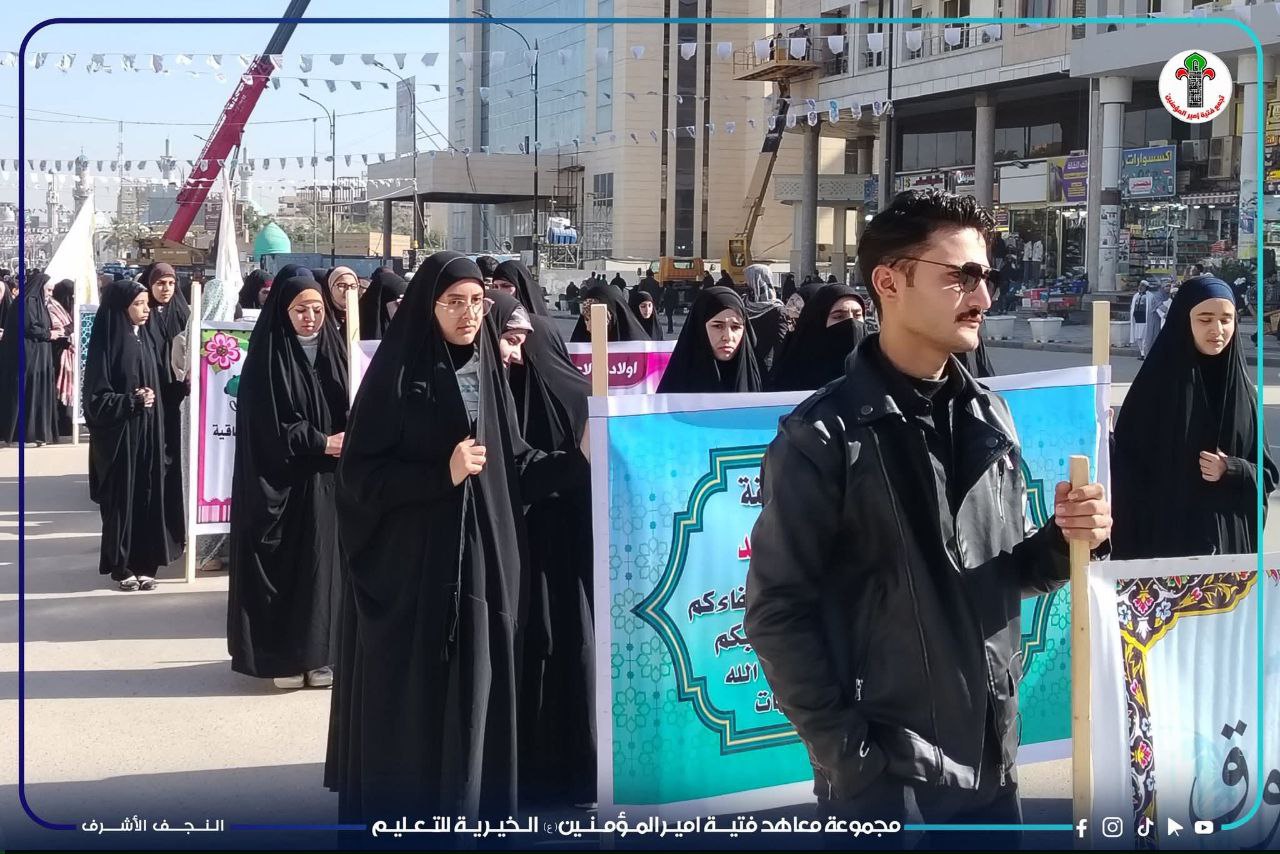 ولفت البيان، إلى أن “المسيرة انطلقت من قرب مسجد الشاكري باتجاه مرقد أمير المؤمنين (ع)، وانتهت بوصول المشاركين إلى ساحة الميدان، قبل أن يتوجهوا لزيارة المرقد الطاهر، وسط أجواء إيمانية سادها الخشوع والولاء”.