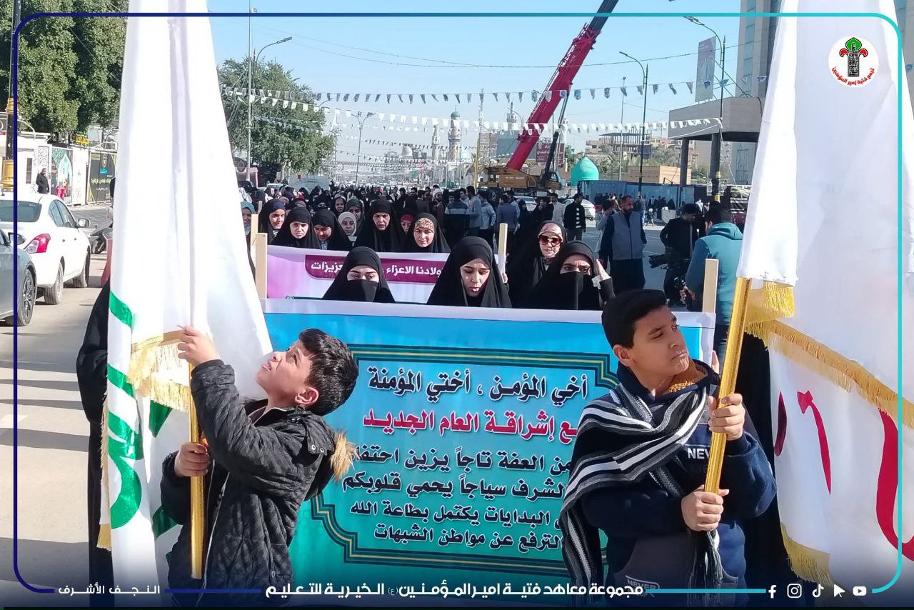أقام تجمع فتية أمير المؤمنين (ع) في مدينة النجف الأشرف، مسيرة فكرية ولائية حاشدة، رمزاً لبداية عام جديد مفعم بالخير والبركة، تزامناً مع ذكرى ولادة أمير المؤمنين الإمام علي بن أبي طالب (ع).