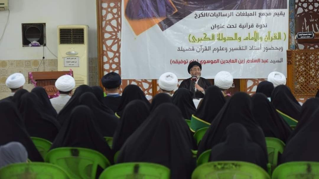 وأضاف، أن “الندوة التي أقيمت في حسينية الزهراء بمنطقة الغزالية، حاضر فيها أستاذ التفسير وعلوم القرآن السيد عبد السلام زين العابدين الموسوي، وحضرها مدير مكتب المرجعية الرشيدة في الكرخ الشيخ عادل الساعدي، وعدد من فضلاء الحوزة العلمية وجمع من النساء المؤمنات”.