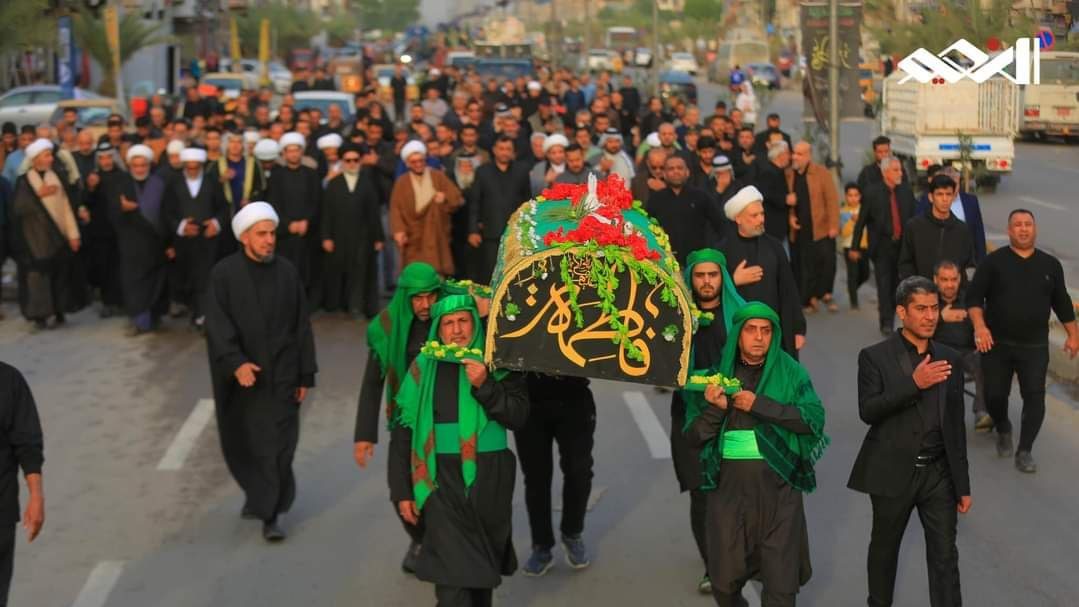 انطلق العزاء الذي تقدمته ممثلية مدينة الصدر وفضلاء ووجهاء المدينة من بداية شارع الداخل باتجاه ساحة 55، منها إلى شارع الفلاح وصولاً إلى دائرة الماء والكهرباء قرب قناة الجيش، كما رافق المسيرة العزائية إجراءات أمنية ومواكب خدمية، لتقديم الخدمات المختلفة للجموع المعزية، بذكرى شهادة السيدة فاطمة الزهراء (ع).