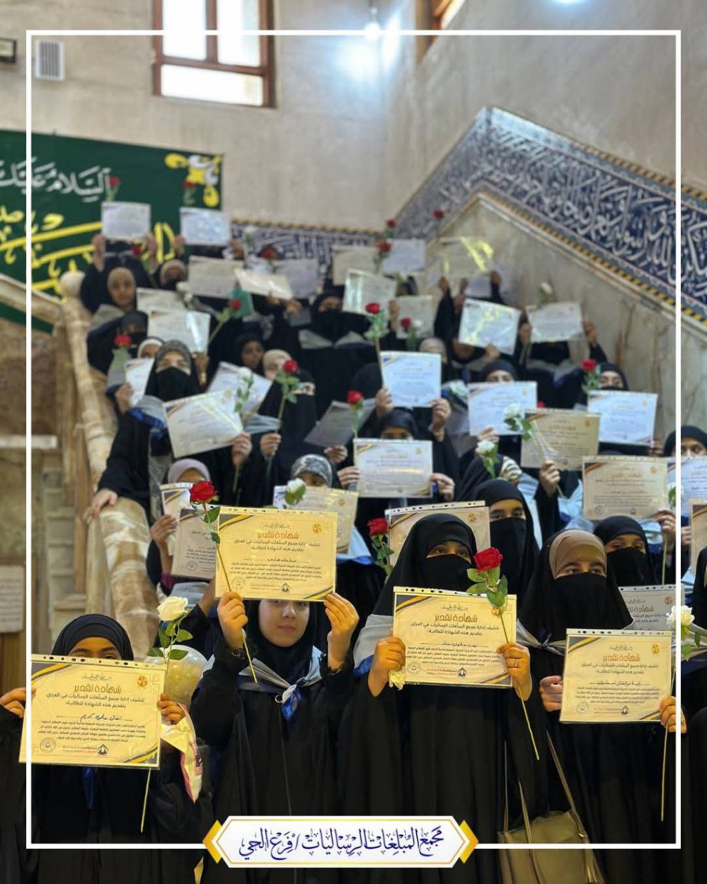 وذكر بيان للمجمع، تلقت “النعيم نيوز” نسخة منه أنه”بفضل الله تعالى وبتوفيقٍ منه، أعلن مجمع المبلّغات الرساليات في قضاء الحي بمحافظة واسط عن تكريم طالبات كشافة الإمام المهدي (عجّل الله فرجه) المشاركات في دورة رقيات الحجة – الدفعة الثانية”.