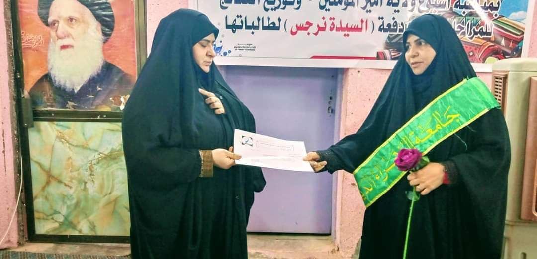 وقال بيان بقلوب يملؤها الفرح ونفوس مبتهجة وتزامنا مع اسبوع الولاية المبارك اقامت جامعتنا حفلاً دينياً لمناسبة تخرج دورة السيدة نرجس توزع من خلاله النتائج لكافة المراحل وتكريم الطالبات الأوائل من كل مرحلة. حيث حققت الجامعة على المركز الثالث على بقية فروع على مستوى العراق.
