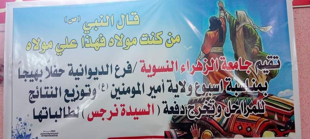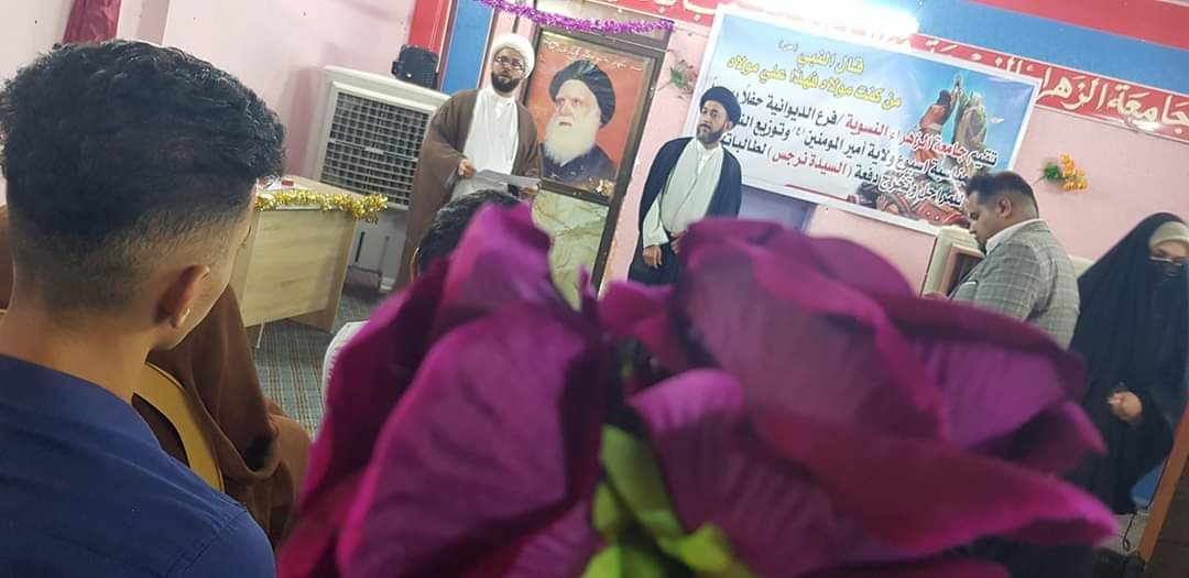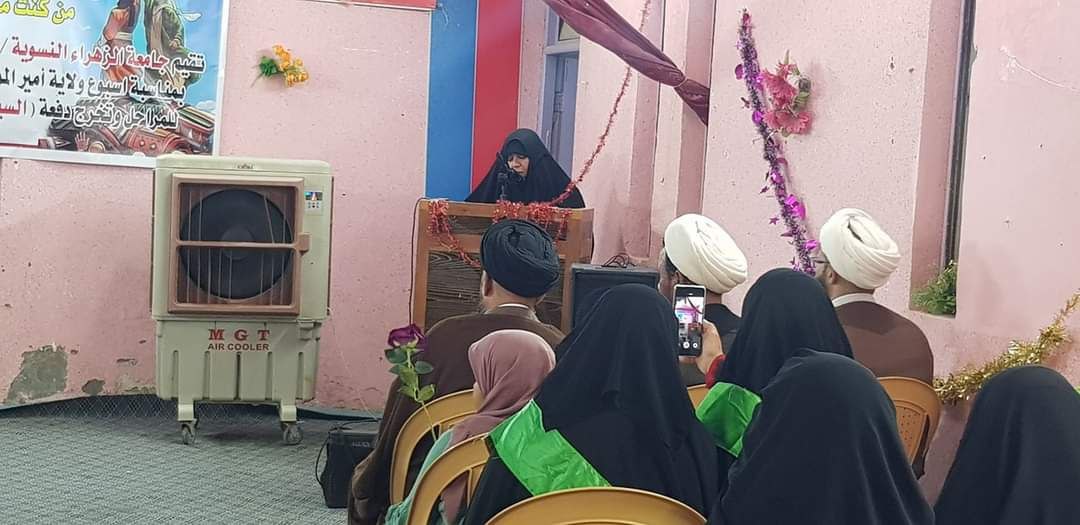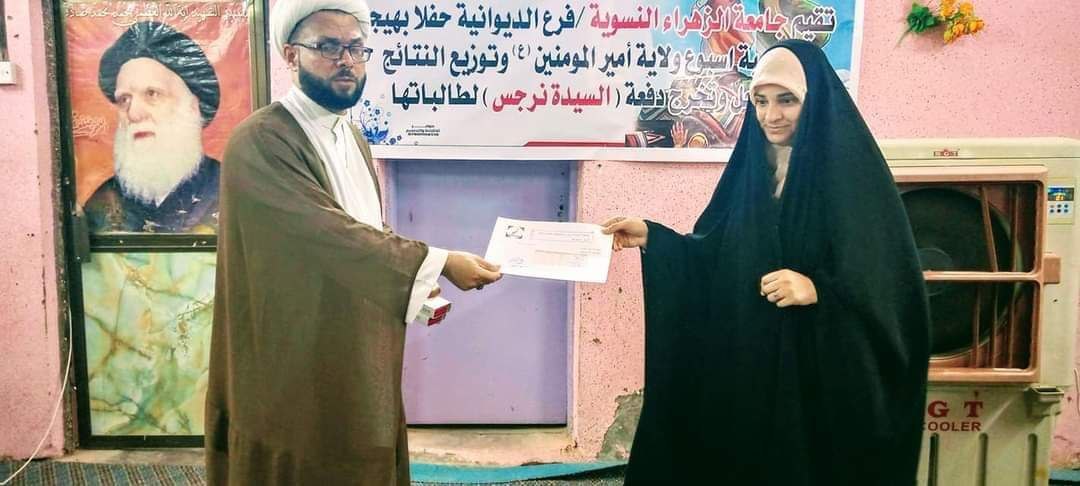 أقامت جامعة الزهراء ع للتبليغ و العلوم الدينية في محافظة الديوانية حفلاً دينياً بمناسبة أسبوع ولاية أمير المؤمنين ع وتوزيع النتائج للمرحلة وتخرج دفعة السيدة نرجس لطالباتها.