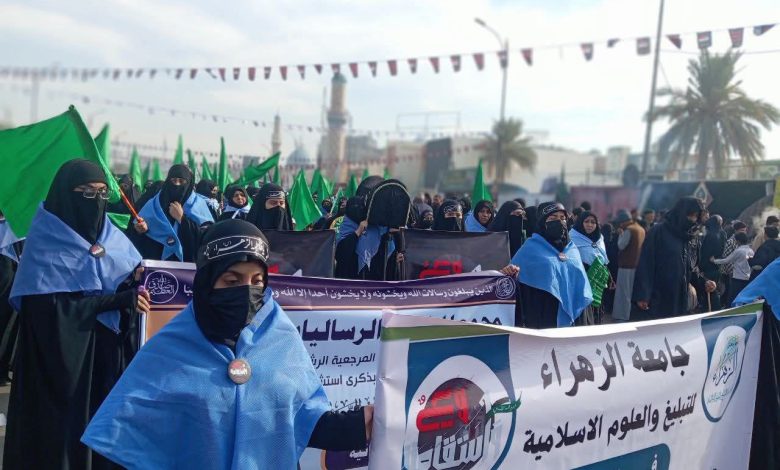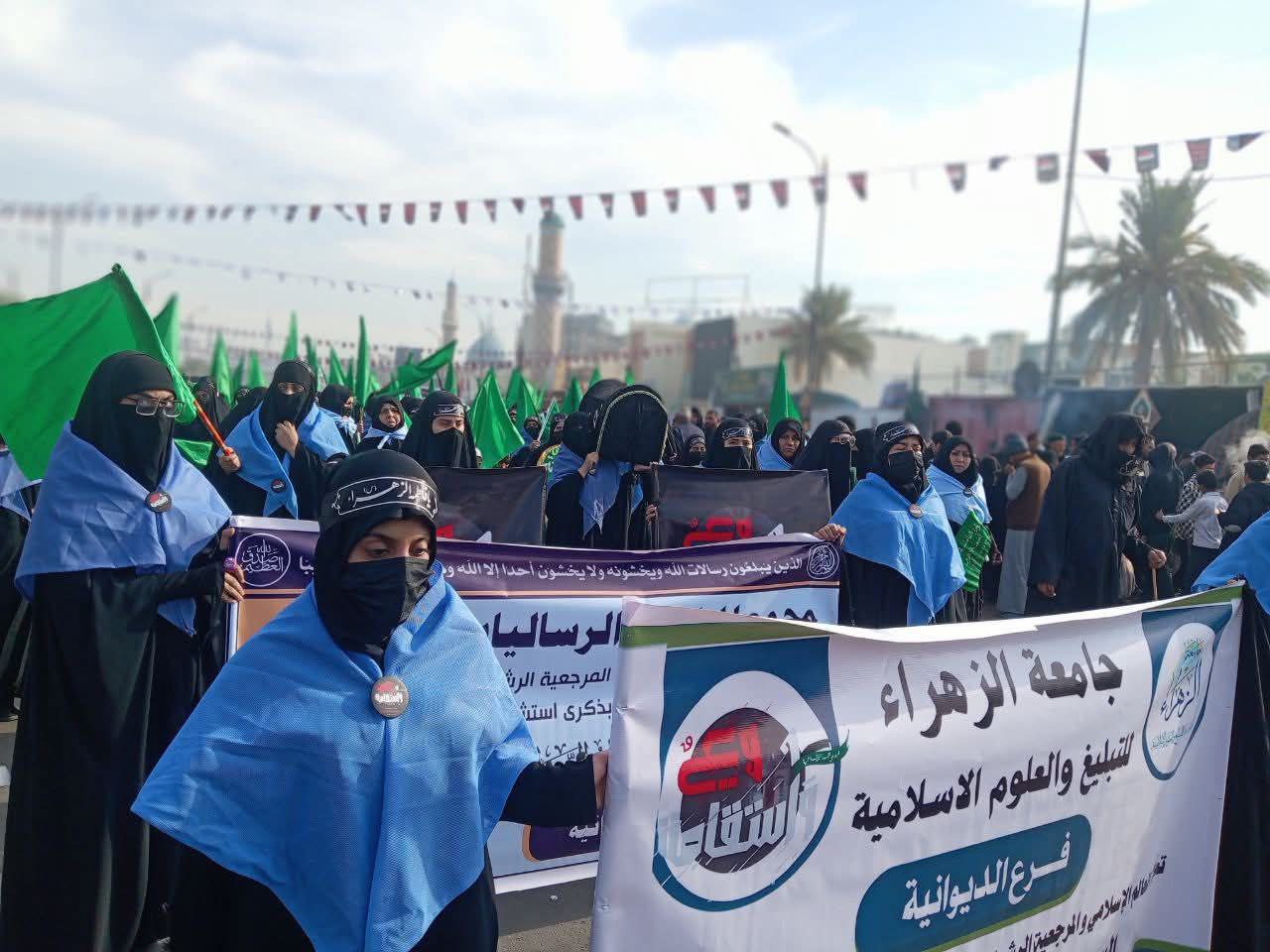 وذكر بيان للجامعة، تلقت “النعيم ينوز” نسخة منه، أنه “بدأت طالبات الجامعة وكوادرها المسيرة من مجسرات ثورة العشرين متوجّهات نحو مرقد أمير المؤمنين الإمام علي (عليه السلام)، تأكيدًا لدورها في إحياء الشعائر، وتعزيز روح الارتباط بسيرة السيدة الزهراء (عليها السلام)”.