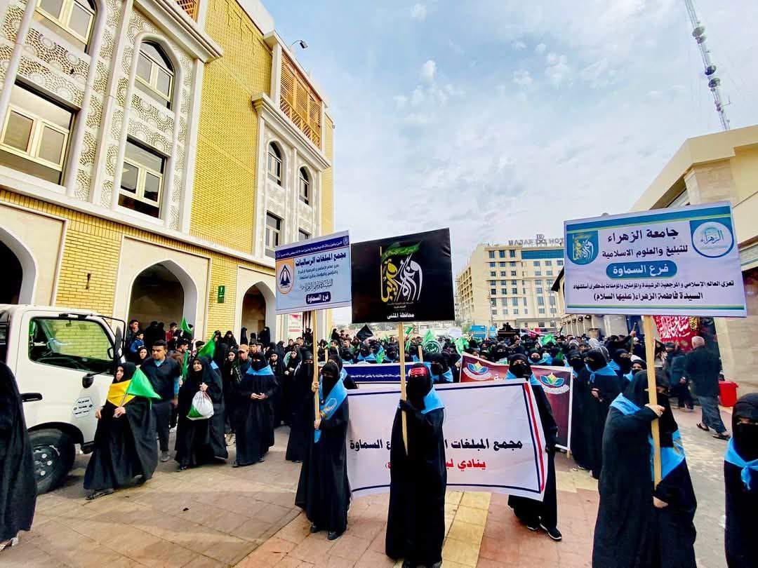 شاركت جامعة الزهراء (ع) للتبليغ والعلوم الإسلامية فرع السماوة، ومجمع المبلغات الرساليات، في الزيارة الفاطمية الكبرى ومراسيم التشييع الرمزي لنعش الصديقة الطاهرة فاطمة الزهراء (ع) في النجف الأشرف.