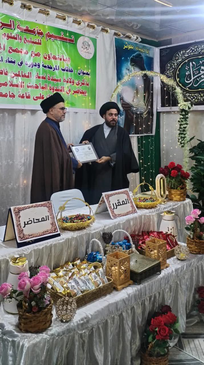 تخللت الندوة، التي تابعتها “النعيم نيوز”، “فقرة توزيع شهادات الشكر والتقدير للطالبات المشاركات في المسيرة الفاطمية، إضافةً إلى تقديم جوائز تشجيعية للطالبات المتميزات في تلخيص خطاب المرجع تشجيعًا لهن على الفهم الواعي والتفاعل الجاد مع توجيهات المرجعية”.