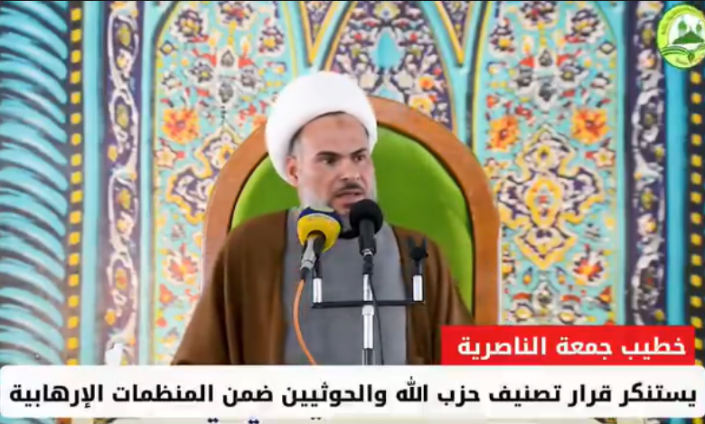 خطيب جمعة الناصرية يستنكر قرار تصنيف حزب الله والحوثيين ضمن المنظمات الإرهابية