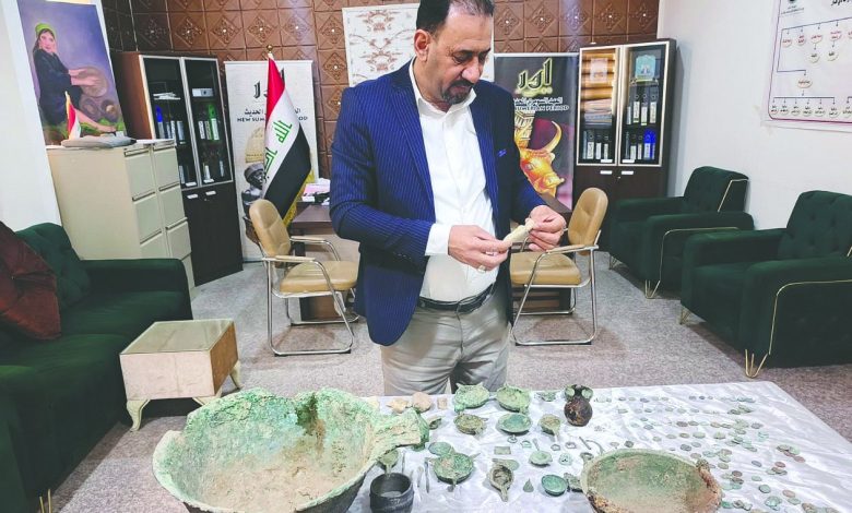 ولفت الرميض، إلى استلام إناءين من النحاس يستخدمان لطهي الطعام وخزن المواد الخاصة في عملية الطبخ، مناشداً المواطنين للتعاون مع مفتشية الآثار بالإبلاغ عن سرّاق القطع الأثرية من ضعاف النفوس الذين يقومون بنبش المواقع الأثرية غير المؤمَّنة بالحراس.