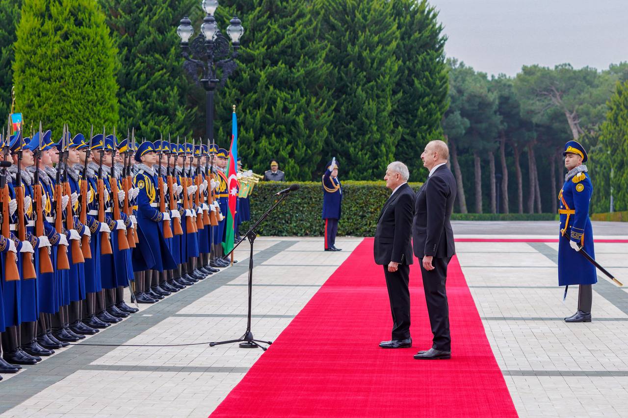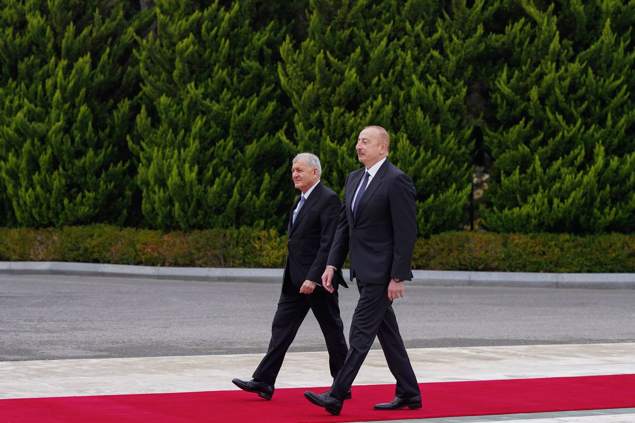 وأضاف، أن “رئيس جمهورية أذربيجان إلهام علييف، كان في استقبال الرئيس عبد اللطيف جمال رشيد في قصر زوغولبا الرئاسي بباكو”، لافتاً إلى أنه “تم عزف النشيدين الوطنيين للبلدين، بعدها صاحب الرئيسان وفدي البلدين”.