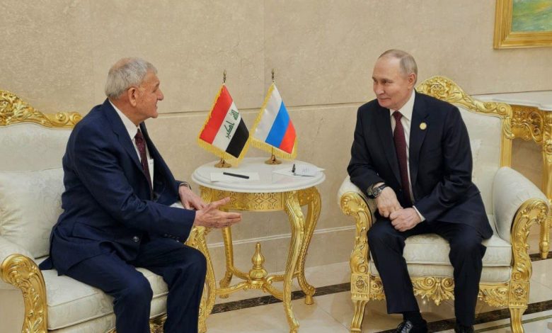 بحث رئيس الجمهورية عبد اللطيف جمال رشيد مع الرئيس الروسي فلاديمير بوتين، اليوم الجمعة، مستجدّات الوضع الإقليمي والدولي، في ضوء التطورات المتسارعة التي تشهدها المنطقة.
