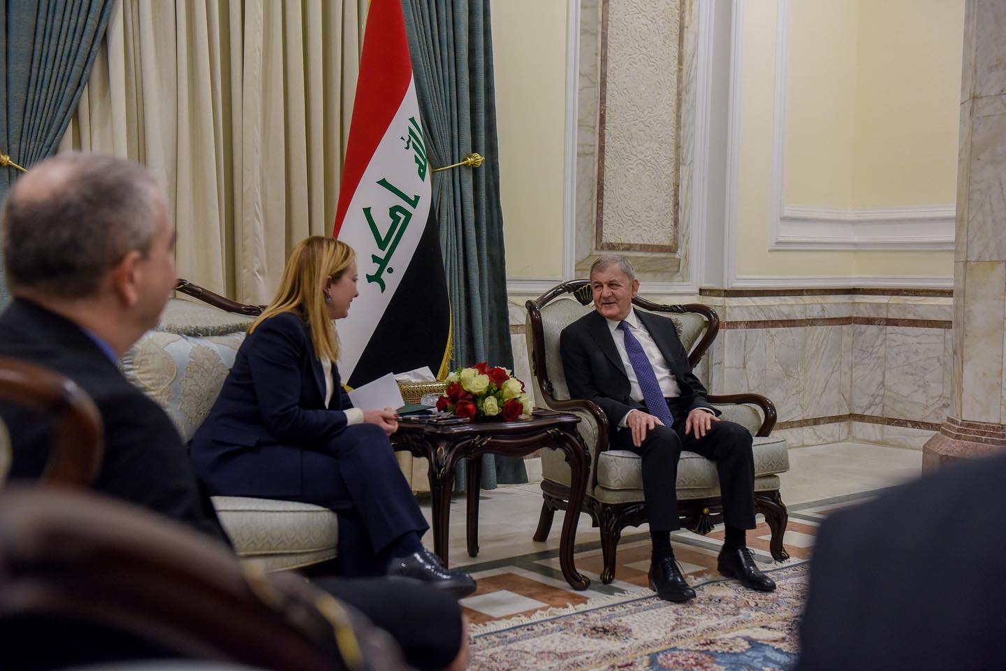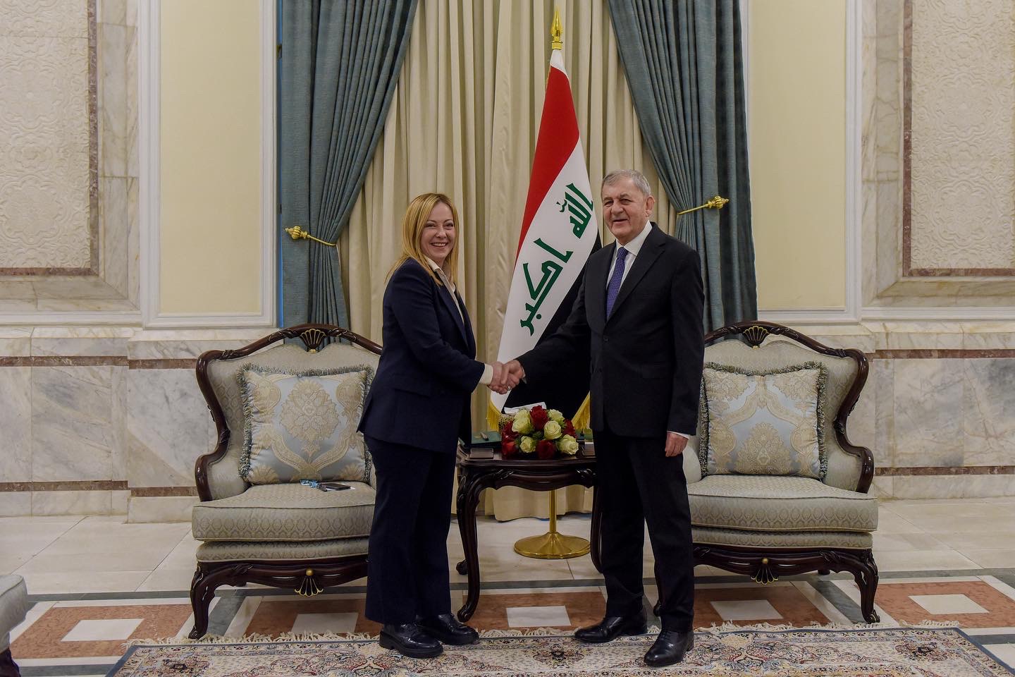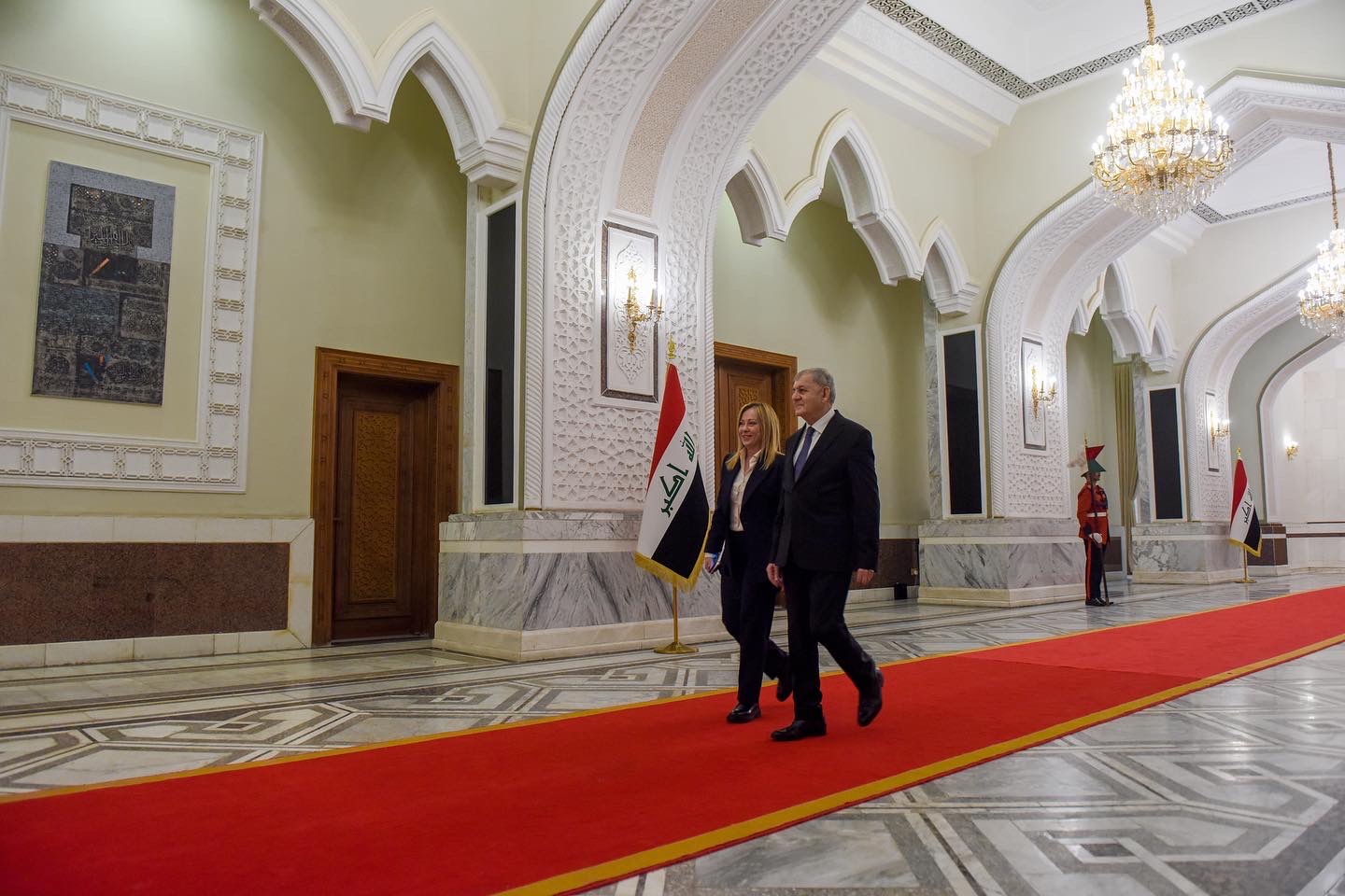 وذكر بيان لرئاسة الجمهورية، تلقت “النعيم نيوز” نسخة منه، أن “رئيس الجمهورية عبد اللطيف جمال رشيد، استقبل اليوم، في قصر بغداد، رئيسة الوزراء الإيطالية جورجيا ميلوني“.