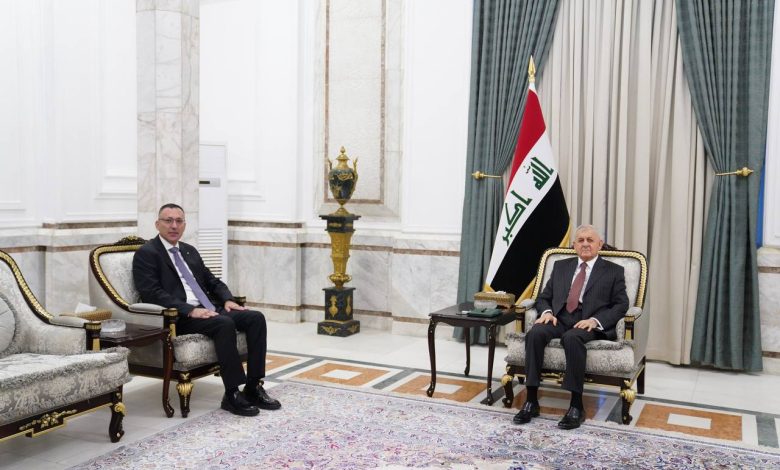 وأكد رئيس الجمهورية خلال اللقاء، “حرص العراق على تعزيز العلاقات الثنائية وتوسيع مجالات التعاون المشترك وبما يخدم مصالح الشعبين الجارين ويعزز الأمن والاستقرار في المنطقة”.