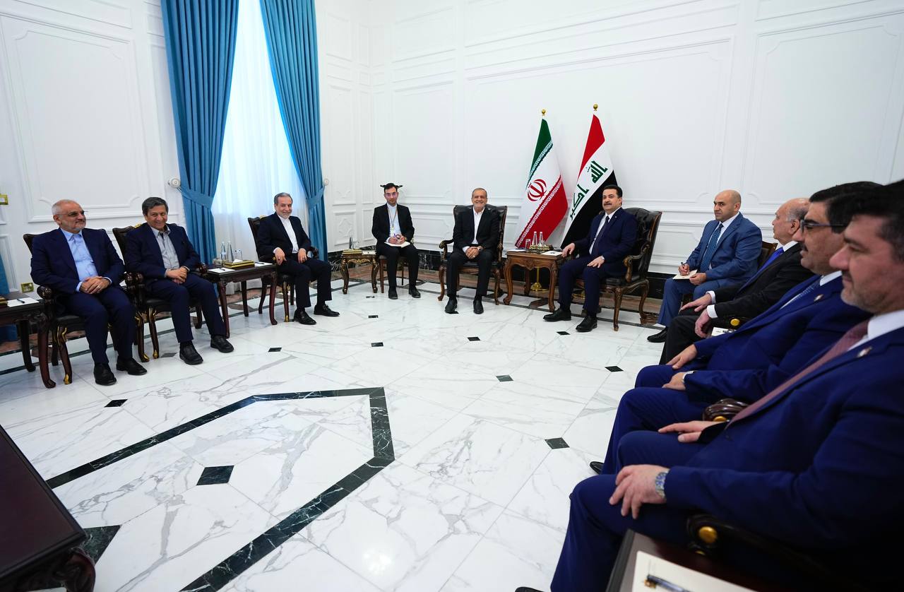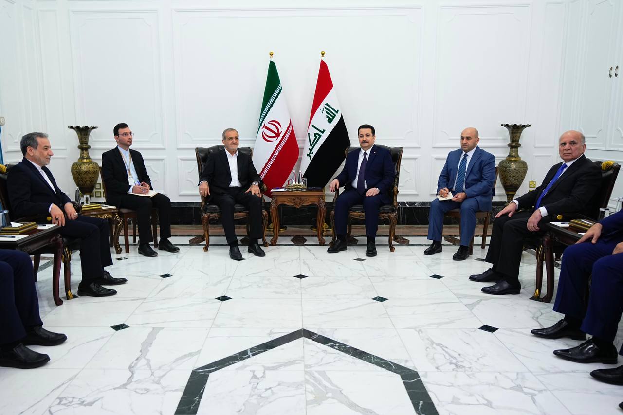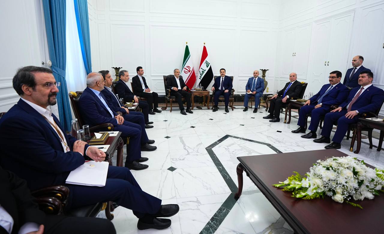وجدد رئيس الوزراء، خلال اللقاء، “ترحيبه بالرئيس بزشكيان، في أول زيارة خارجية له بعد تسنّمه مهام منصبه”، مُستذكراً “مواقف الرئيس الراحل إبراهيم رئيسي تجاه العراق”، ومؤكداً “أهمية العمل الثنائي بين البلدين، لمواجهة التحديات الاقتصادية والأمنية في المنطقة، وبما يصب في مصلحة الاستقرار والتنمية”.