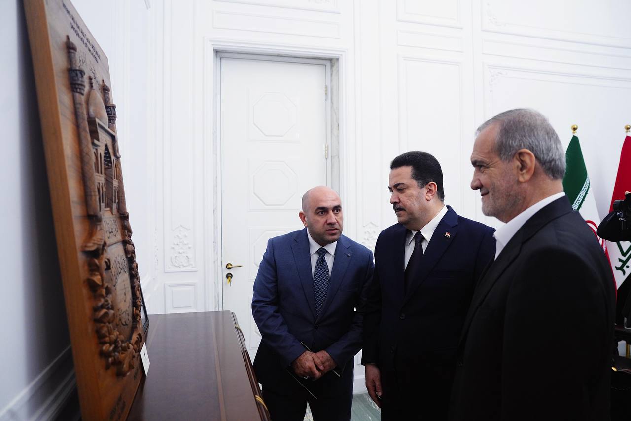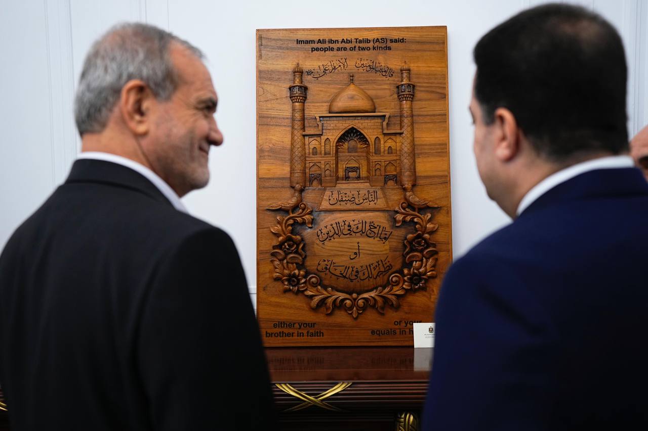 وقدّم بزشكيان، إلى رئيس الوزراء، “لوحة تضمّنت رسالة من المرشد الأعلى الإيراني السيد علي الخامنئي، جدد فيها تقديره وشكره للعراق حكومة وشعباً، على ما جرى بذله من جهود في استقبال الزائرين، في زيارة إحياء ذكرى أربعينية الإمام الحسين وصحبه (عليهم السلام)، وما يمثله هذا الفعل من تجسيد للكرم الإسلامي وحُسن الضيافة العربية”.
