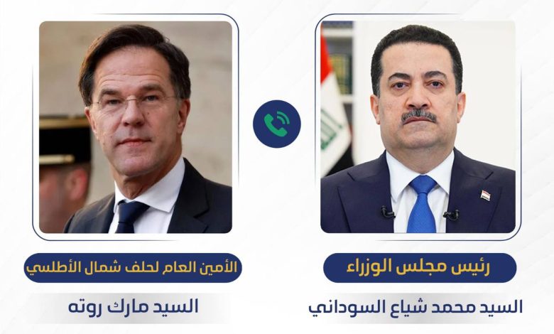 وقال المكتب الإعلامي لرئيس مجلس الوزراء، في بيان تلقت “النعيم نيوز” نسخة منه، “رئيس مجلس الوزراء محمد شياع السوداني، تلقى اتصالاً هاتفياً من الأمين العام لحلف شمال الأطلسي مارك روته، جرى خلاله التباحث بشأن الأوضاع في المنطقة، والتصعيد الخطير الذي تشهده الحرب على إيران”.