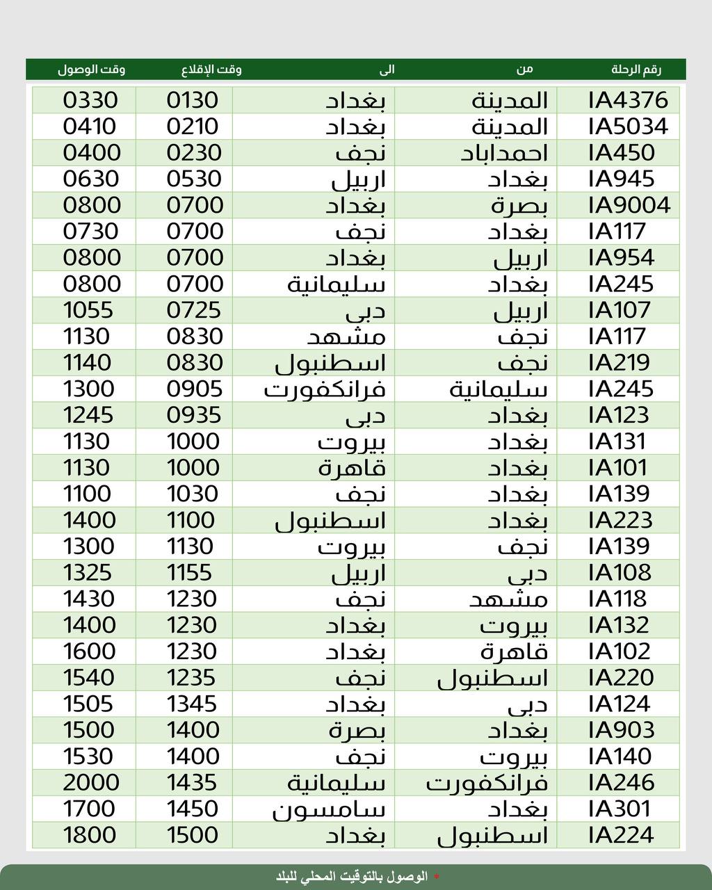 نشرت الخطوط الجوية العراقية، جدول الرحلات الجوية ليوم غد الخميس.
