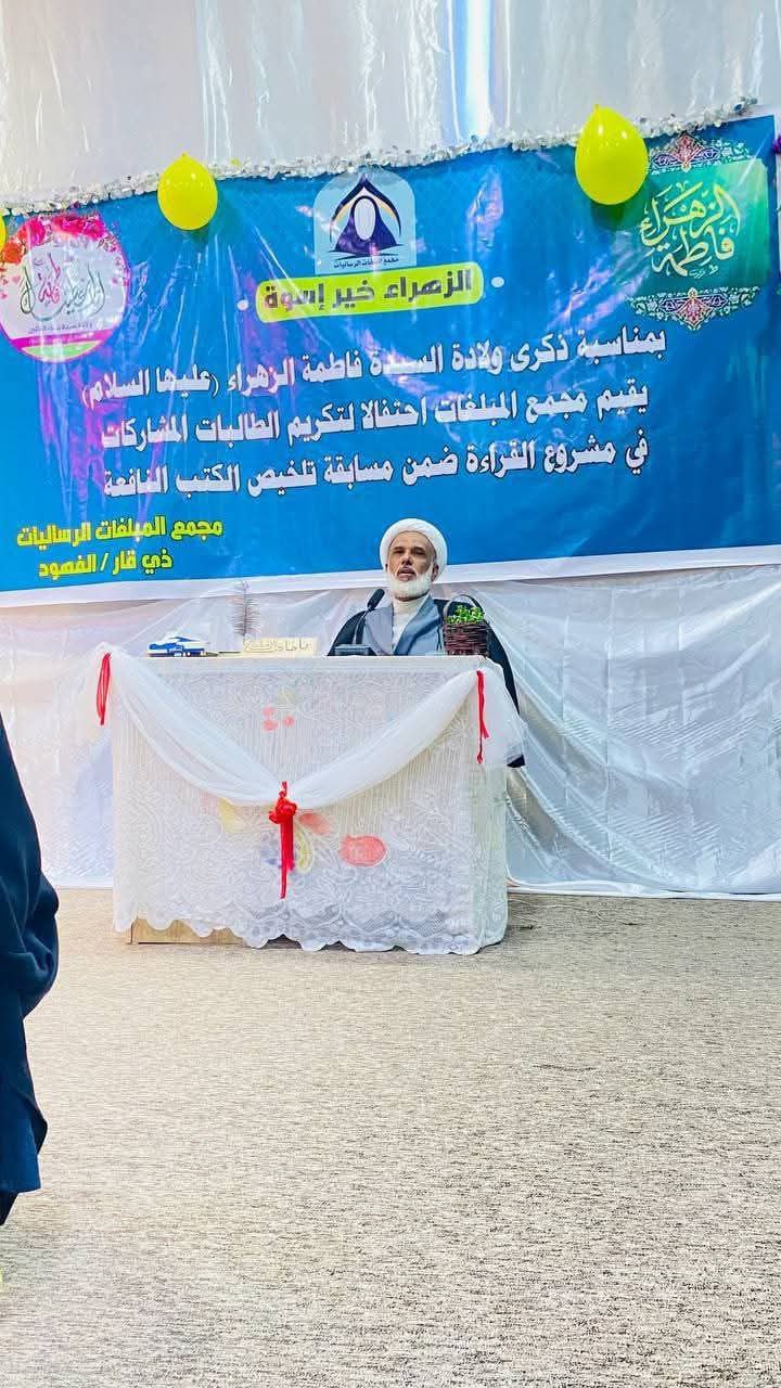 واضاف، ان “الاحتفال تضمن عدة فعاليات منها تكريم الطالبات المشاركات في مشروع القراءة ضمن مسابقة تلخيص الكتب النافعة، محاضرة عن الزهراء وكيف نتخذها قدوة، فقرة اسئلة عن حياة الزهراء”.