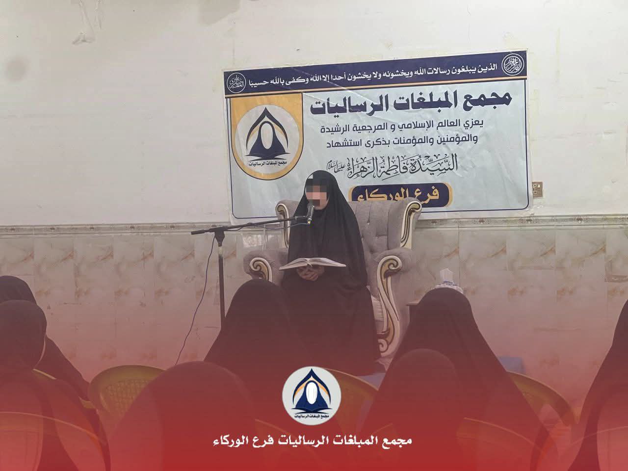 أعلن مجمع المبلّغات الرساليات في قضاء الوركاء، اليوم الخميٍ، إقامة مجلس عزاءٍ بمناسبة ذكرى شهادة السيدة فاطمة الزهراء (عليها السلام) – بحسب الرواية الأولى.
