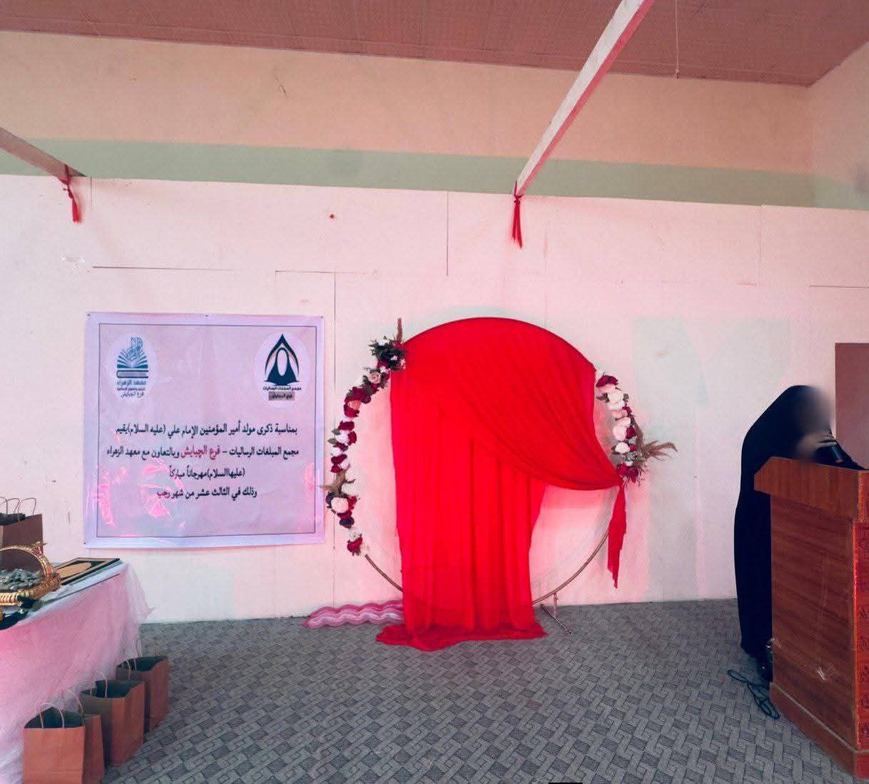 أقام مجمع المبلّغات الرساليات في قضاء الچبايش، اليوم الاثنين، حفلاً بهيجًا بمناسبة ذكرى مولد أمير المؤمنين الإمام علي بن أبي طالب (ع)، وبالتعاون مع معهد الزهراء (ع) ومنتدى شباب الچبايش.