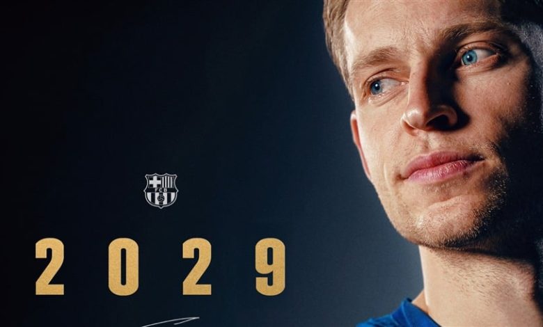 أعلن نادي برشلونة، اليوم الأربعاء، رسمياً عن تأمين مستقبل أحد أبرز ركائزه في خط الوسط، بتمديد عقد النجم الهولندي فرينكي دي يونغ.