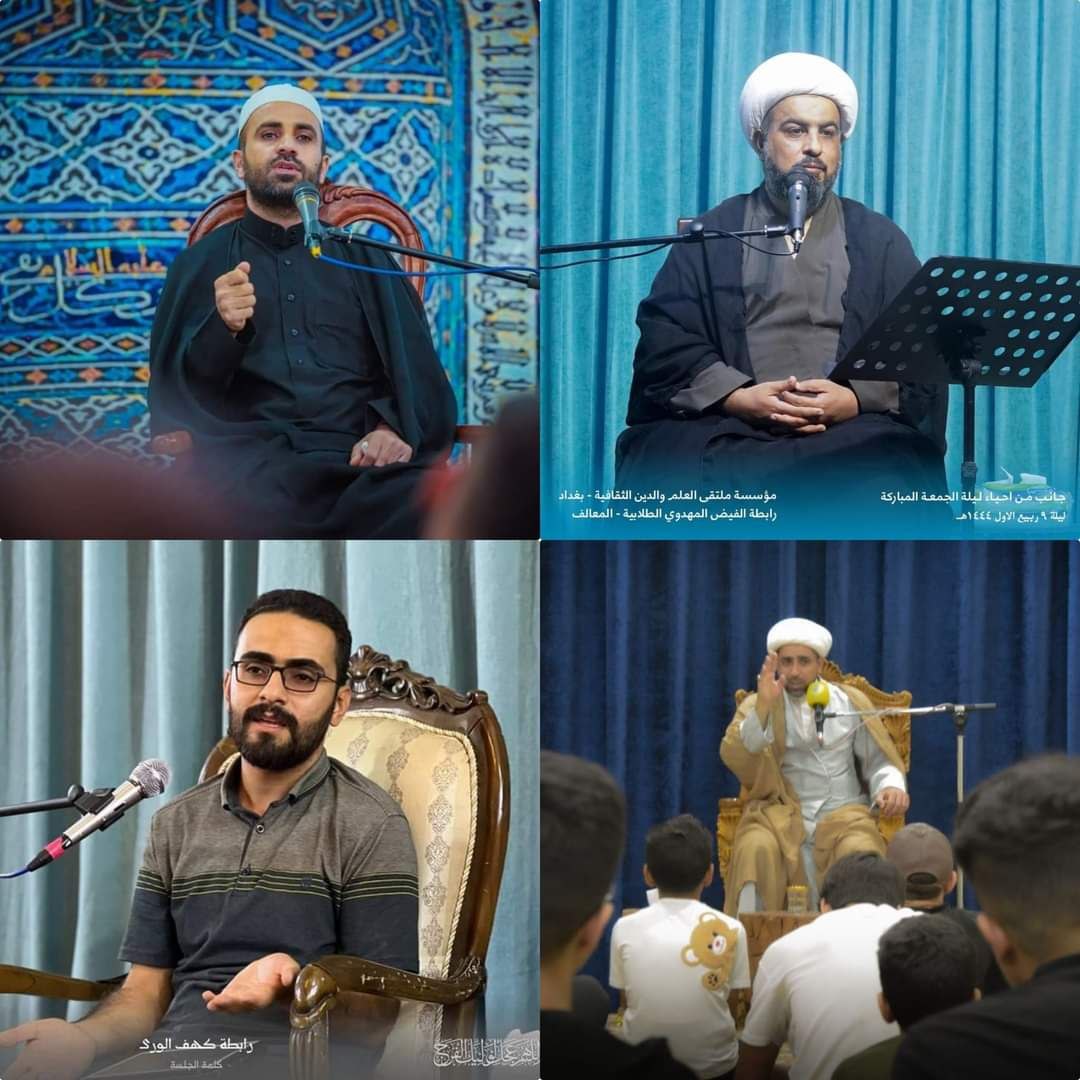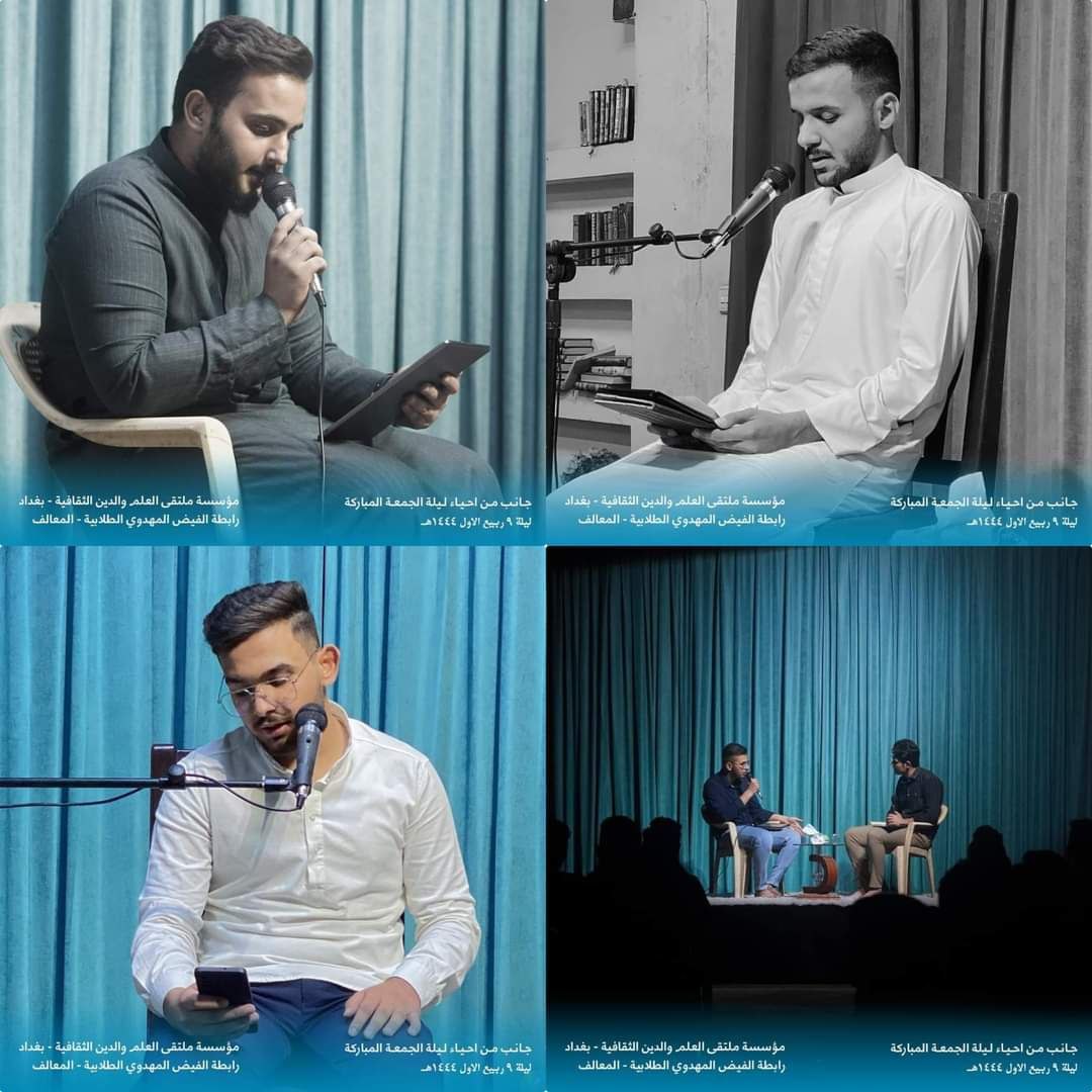 وذكر بيان للمؤسسة، تلقت “النعيم نيوز” نسخة منه، أنه “ضمن برامج روابط مؤسسة ملتقى العلم والدين الثقافية فرع بغداد، المستمر، لإحياء ليالي الجُمع، تستمر روابط مؤسسة ملتقى العلم والدين الثقافية في بغداد، بإحياء ليالي الجمع ضمن برنامجها الأسبوعي”.