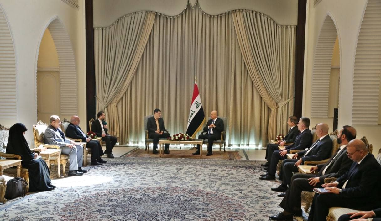 استقبل رئيس الجمهورية برهم صالح، اليوم الأربعاء، مساعد الرئيس الإيراني رئيس مؤسسة الشهداء الإيرانية أمير حسين قاضي زاده هاشمي، في قصر السلام ببغداد.