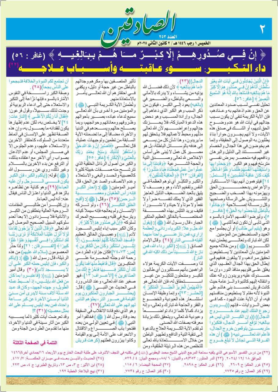 صدر عن المكتب الإعلامي لسماحة المرجع الديني الشيخ محمد اليعقوبي في النجف الأشرف، نشرة الصادقين العدد المائتان والثلاث والخمسون.
