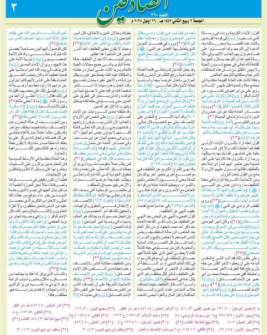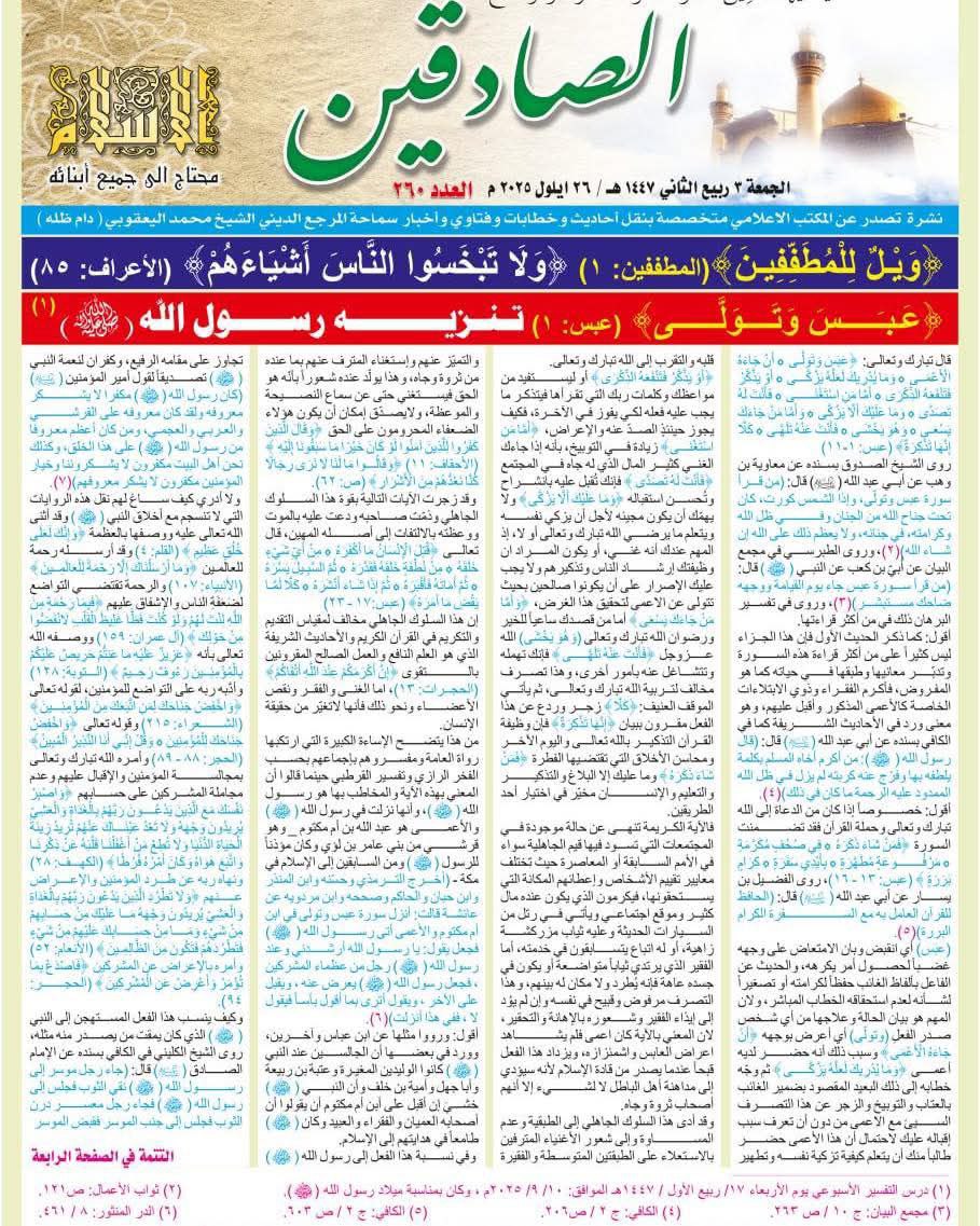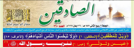 صدور نشرة الصادقين المائتان والستون عن المكتب الإعلامي للمرجع اليعقوبي في النجف الأشرَف