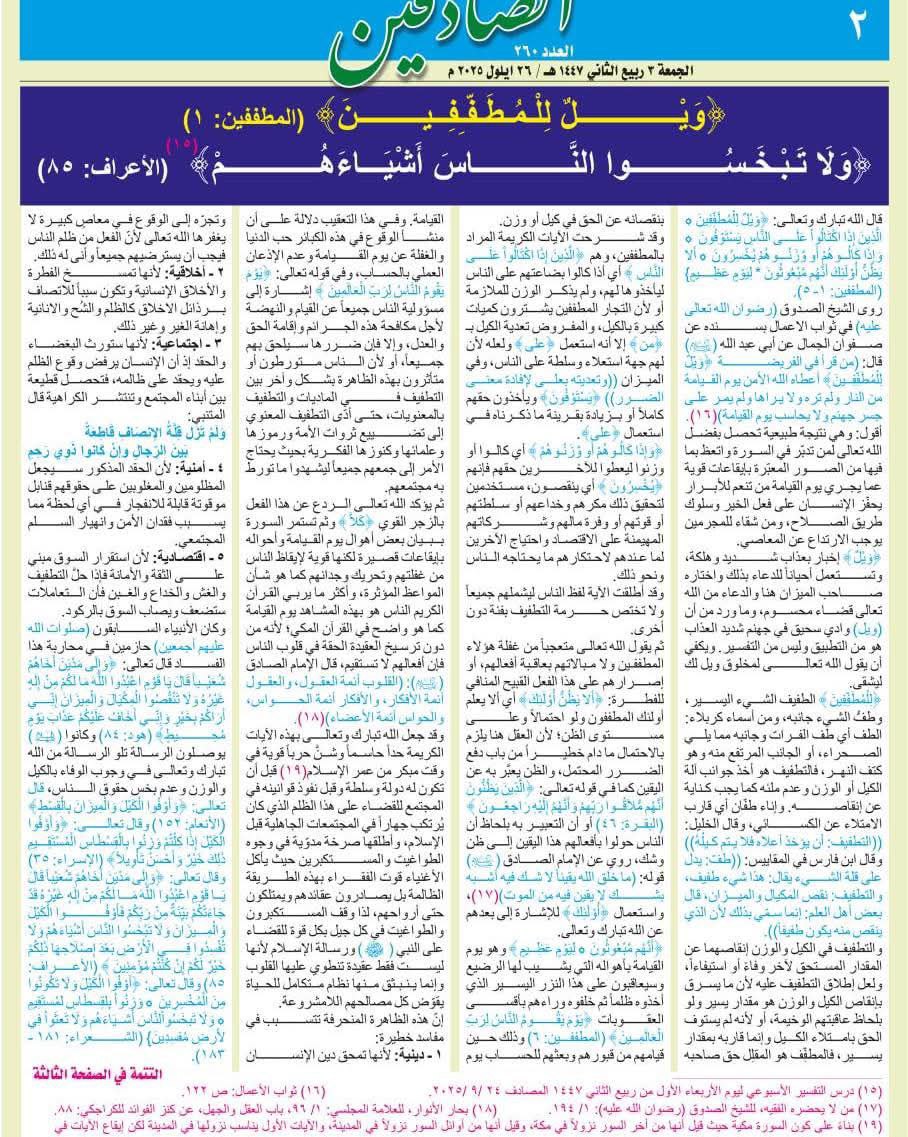 الصفحة الثانية: {وَيْلٌ لِلْمُطَفِّفِينَ} – {وَلَا تَبْخَسُوا النَّاسَ أَشْيَاءَهُمْ}