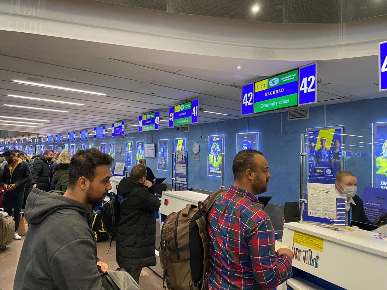 “صور حصرية” لوصول المواطنين العراقيين العالقين داخل بيلاروسيا الى مطار مينسك