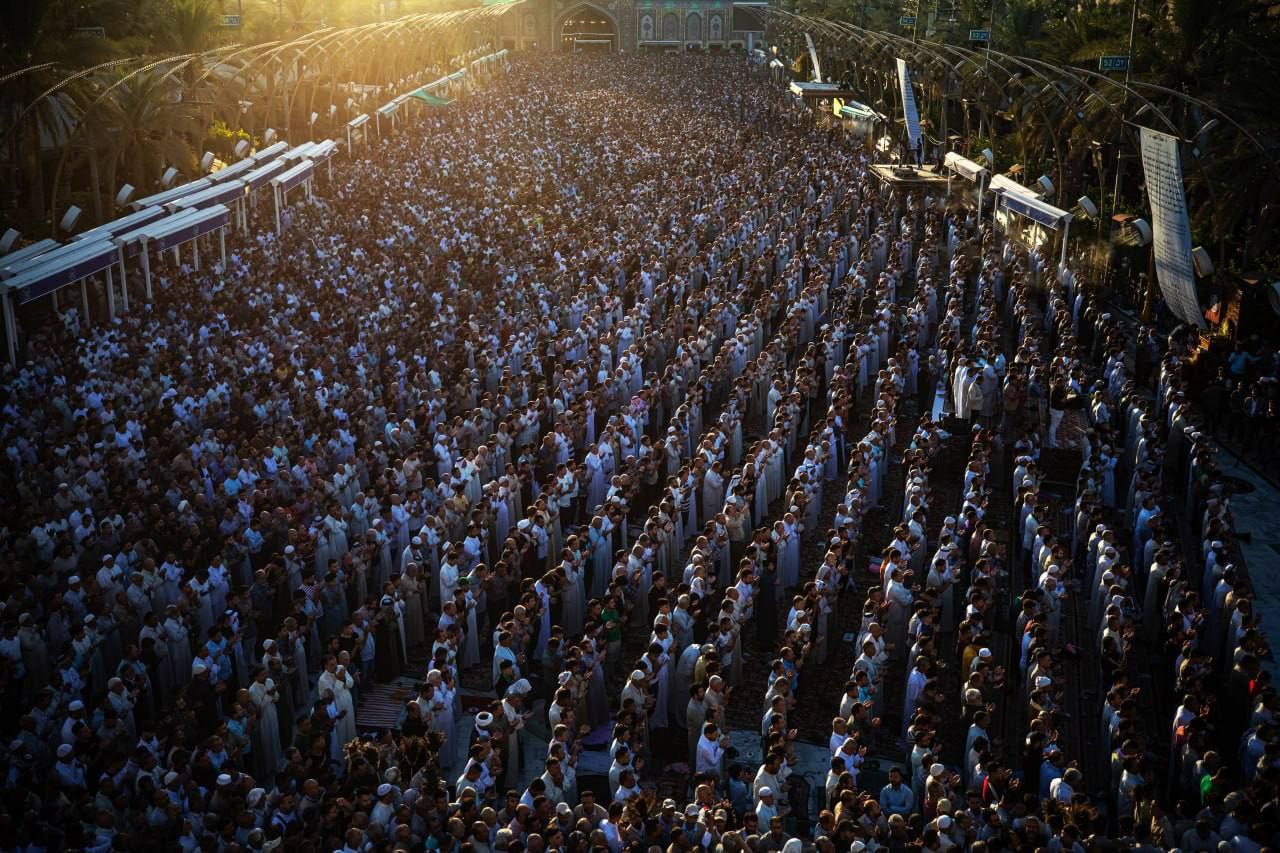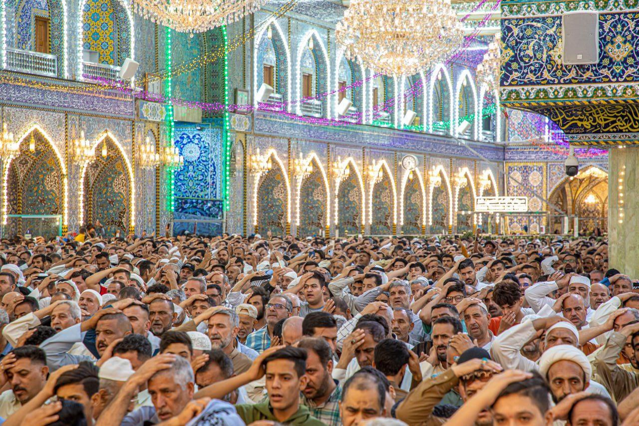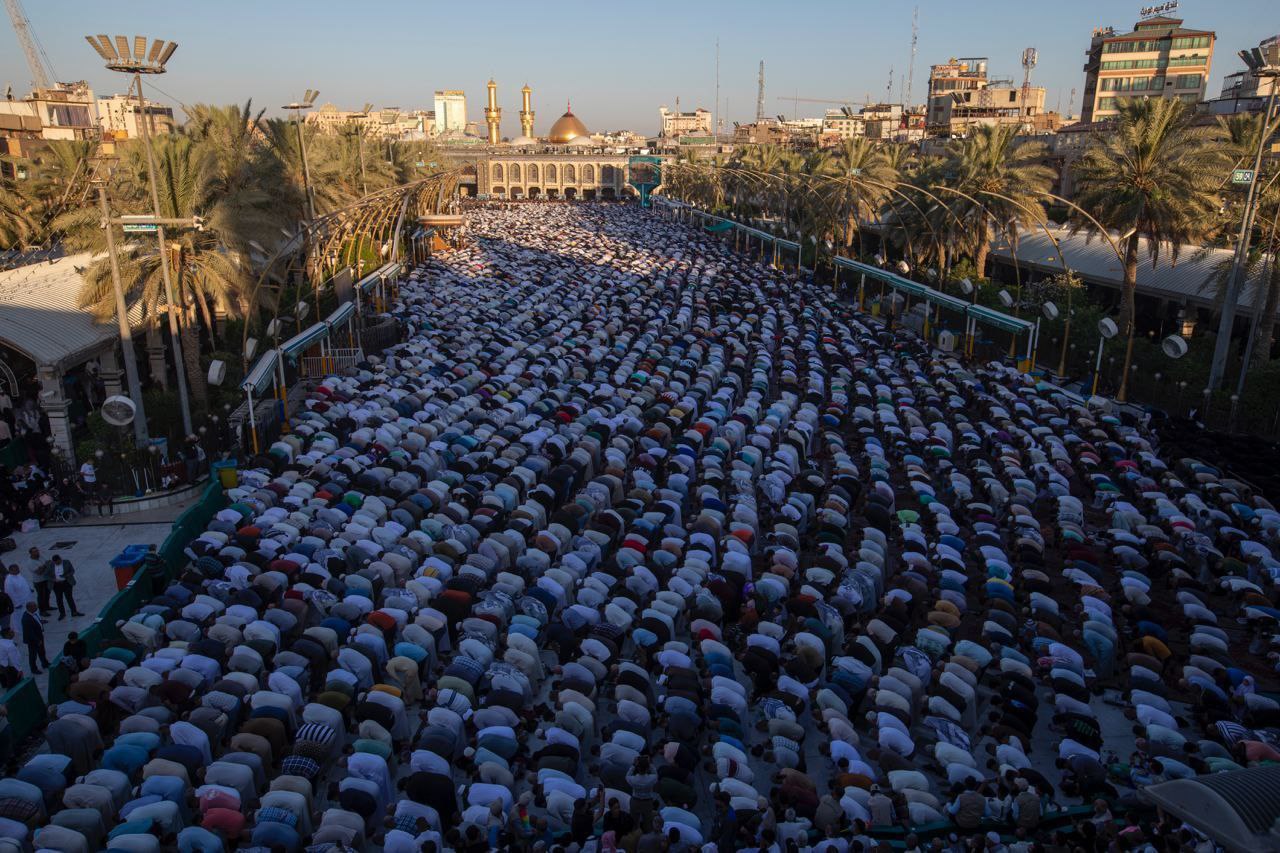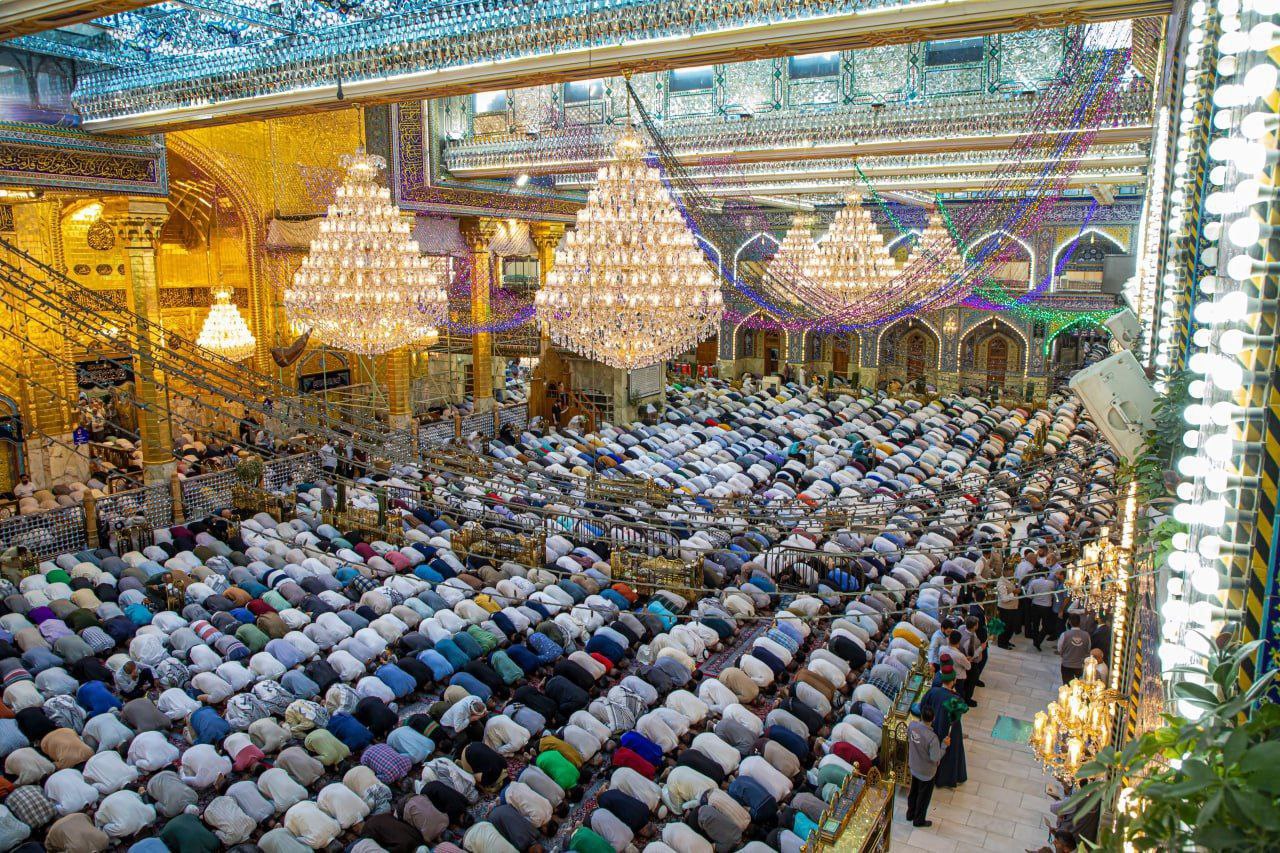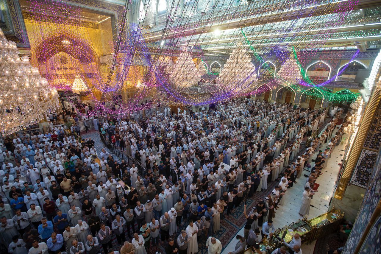 أحيت جموع غفيرة من المصلين في كربلاء، صباح أمس الخميس، مراسيم صلاة العيد عند حرم الإمام الحسين وأخيه أبي الفضل العباس.