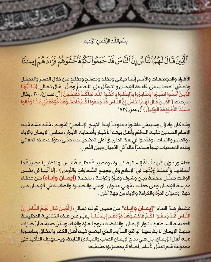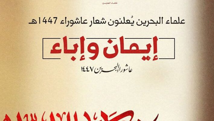 وفي رحاب عاشوراء الإمام الحسين (ع)، يعلن علماء البحرين عن شعار العام ١٤٤٧هـ وهو: (إيمان وإباء)