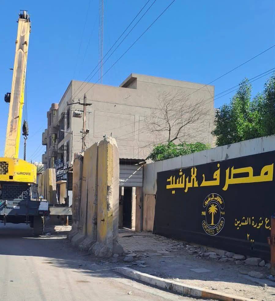 أعلنت قيادة عمليات بغداد، اليوم السبت، عن رفع الكتل الكونكريتية حول مصرف الرشيد بجانب الرصافة في بغداد.