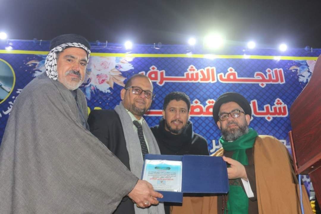 ختاما تم تكريم الشخصيات والشعراء والرواديد بشهادات تقديرية تثمينا لجهودهم المباركة في إنجاح هذا الحفل البهيج.