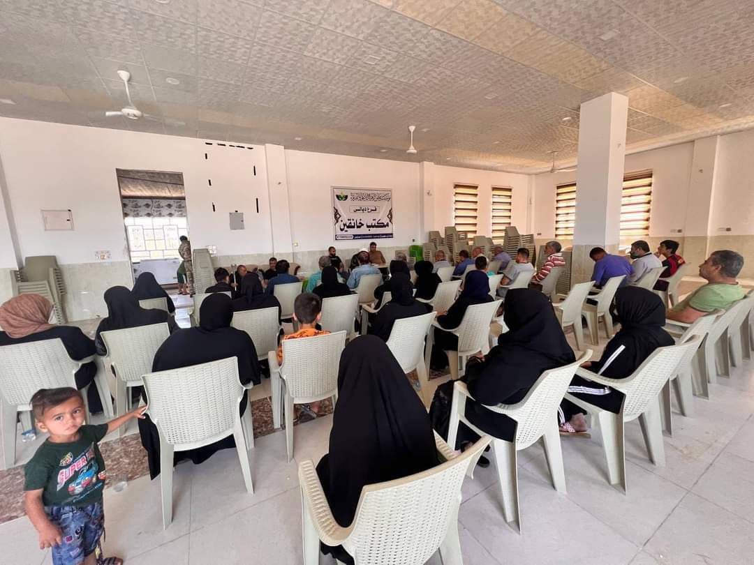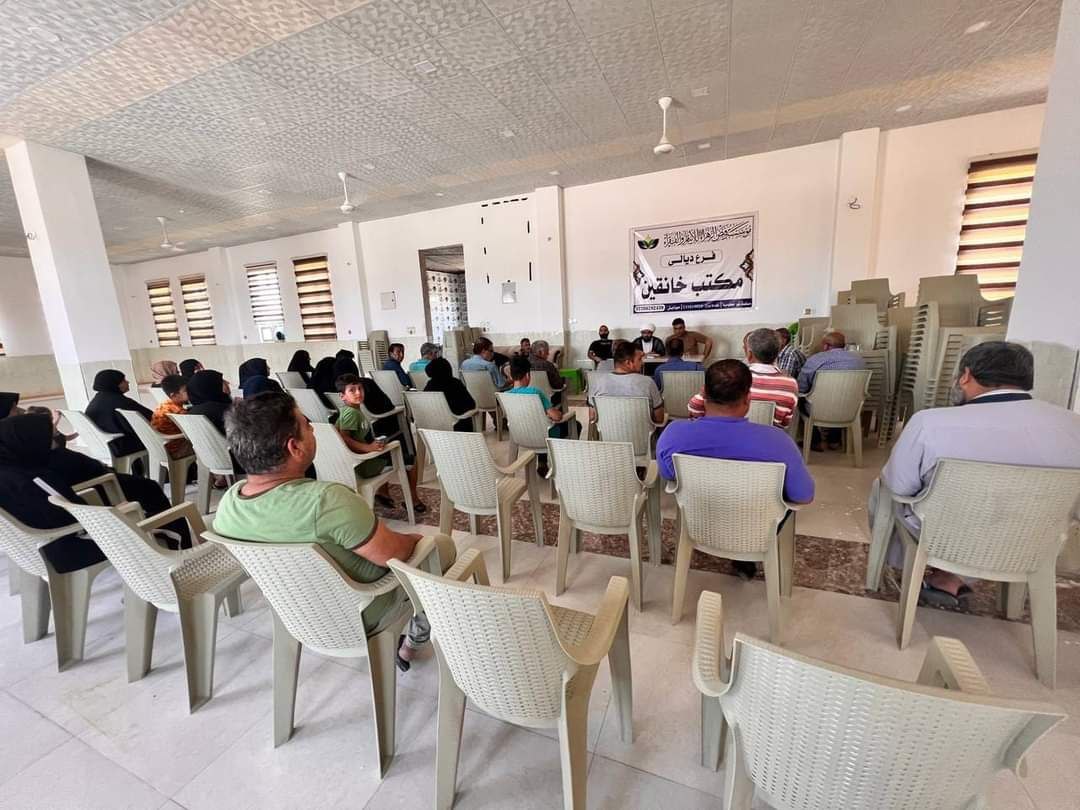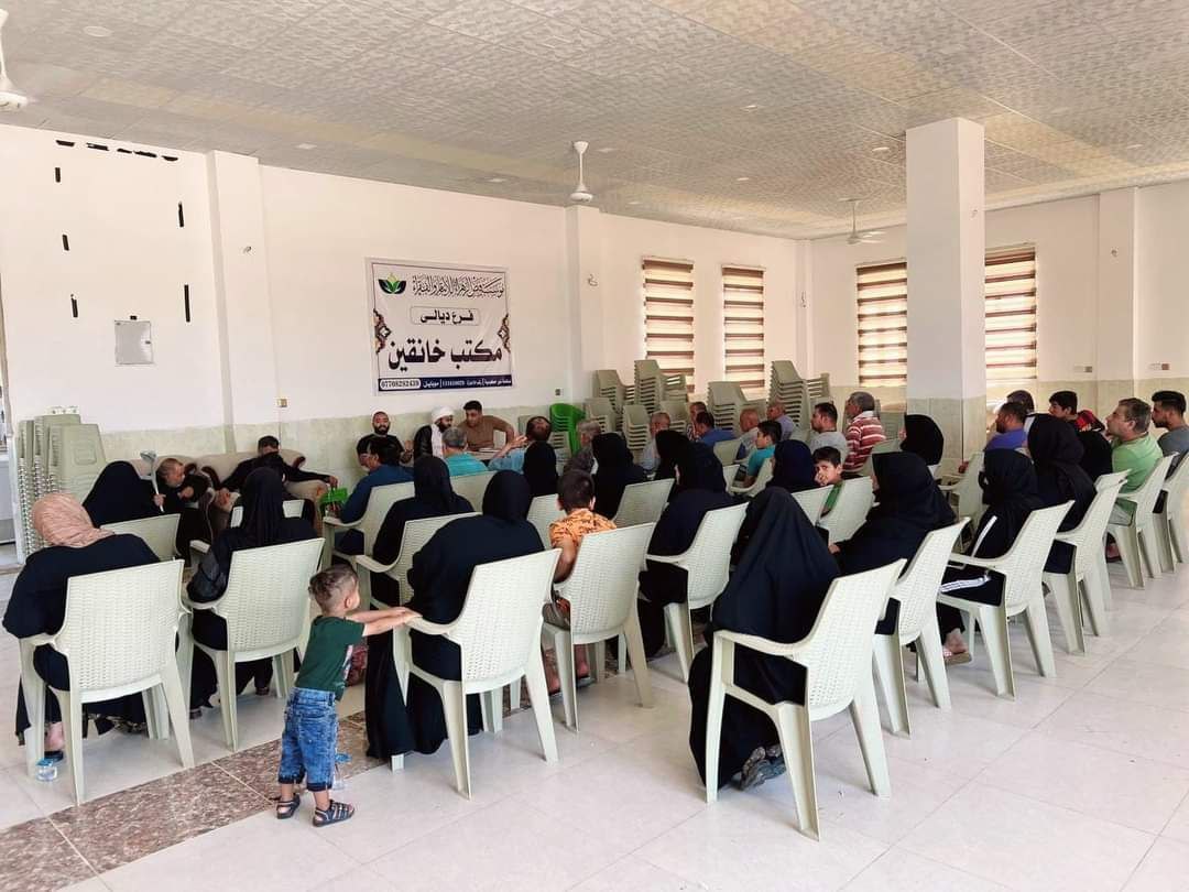 باشرت مؤسسة فيض الزهراء للأيتام والفقراء مكتب خانقين وبرعاية مكتب سماحة المرجع الديني الشيخ محمد اليعقوبي في ديالى بتوزيع التخصيص الشهري على العوائل الكريمة في مسجد وحسينية الامام الحسن المجتبى ( ع ).