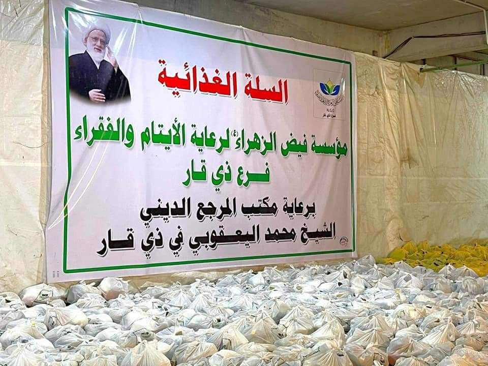 ضمن برنامجها الإنساني المستمر لإغاثة العوائل الفقيرة والمتعففة وبرعاية مكتب سماحة المرجع الديني الشيخ محمد اليعقوبي في ذي قار وزّعت مؤسسة فيض الزهراء (ع) لرعاية الإيتام والفقراء فرع #ذي_قار أكثر من (٤٠٠٠) سلة غذائية.