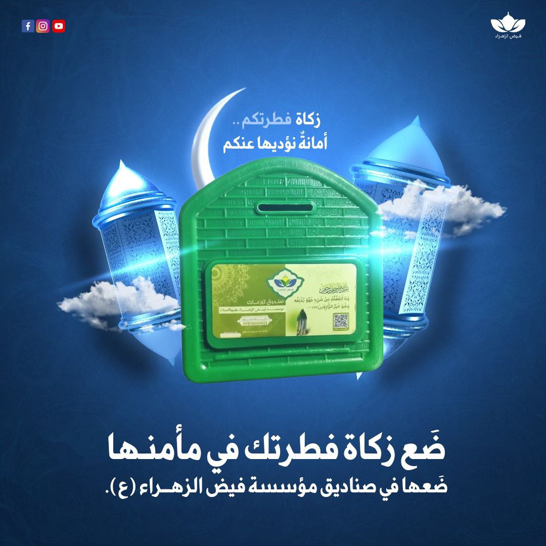فيض الزهراء (ع) تحصل على إذن شرعي من المرجع اليعقوبي يجيز للمكلّفين وضع زكاة الفطرة في صناديقها