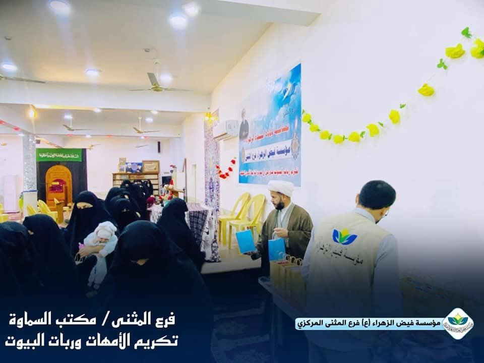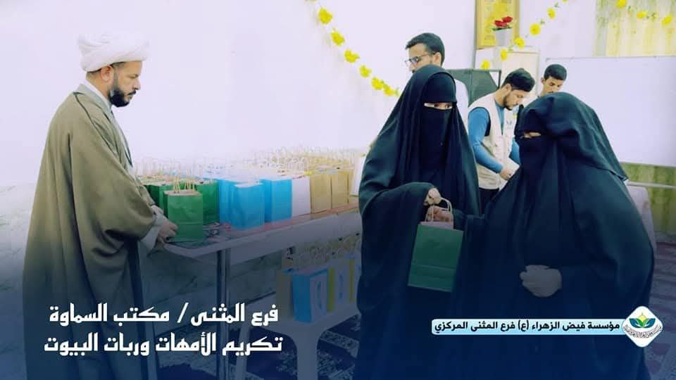 أعلنت مؤسسة فيض الزهراء (ع) للأيتام والفقراء في محافظة المثنى، اليوم الأحد، عن تكريم الأمهات وربات البيوت، في خطوة هي الأولى من نوعها بمناسبة ذكرى ولادة السيدة الزهراء (ع).