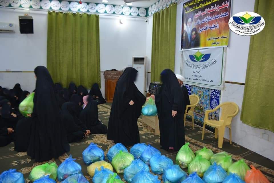 وأوضح، “حيث تم إلقاء كلمة بالمناسبة لمدير المؤسسة الشيخ أحمد الزركوشي، وكلمة لإحدى الأخوات من مجمع المبلغات الرساليات في الرصافة الثانية”، مضيفاً “وتم خلال المجلس قراءة سورة الفاتحة وقوفاً، وإلقاء قصائد رثاء بهذه المناسبة، تم بعدها توزيع سلة غذائية على العوائل البالغ عددهم ٢٦٠ عائلة، وإهداء ثوابها إلى روح السيد الشهيد ونجليه، سائلين الله عز وجل أن يحشرنا وإياهم مع محمد وآل محمد”.