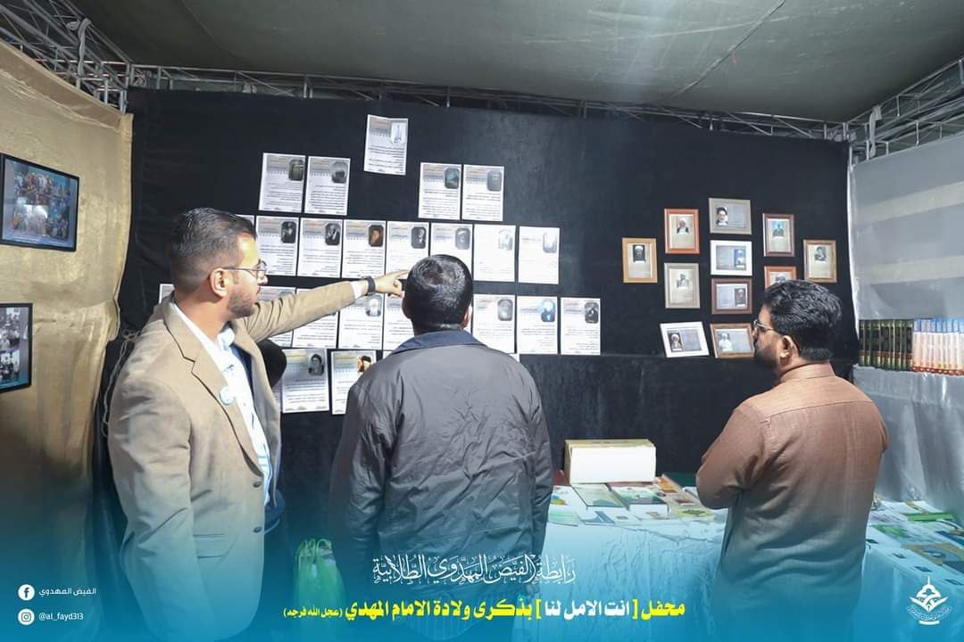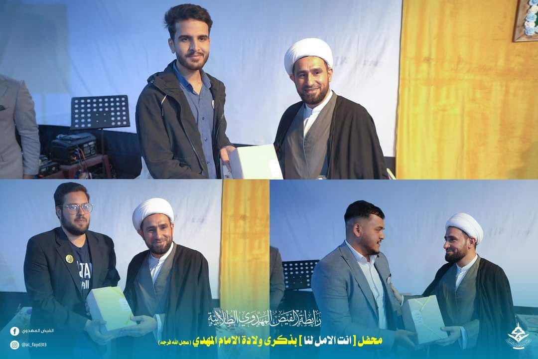 وأضاف البيان، “خارطة التمهيد وتضمنت (١٠) خطوات يسير بها الإنسان لكي يكون في ركب قافلة الإمام المهدي (عج) والممهدين له، توزيع الجوائز على الفائزين بالمسابقة الثقافية التي أطلقتها الرابطة للمراتب الثلاث الأولى، اكتب رسالة إلى الإمام تضمنت مشاعر المشتاقون لإمامهم يخطوها بأناملهم، لكي نضعها في بيته المبارك في السهلة، المرسم المهدوي”.