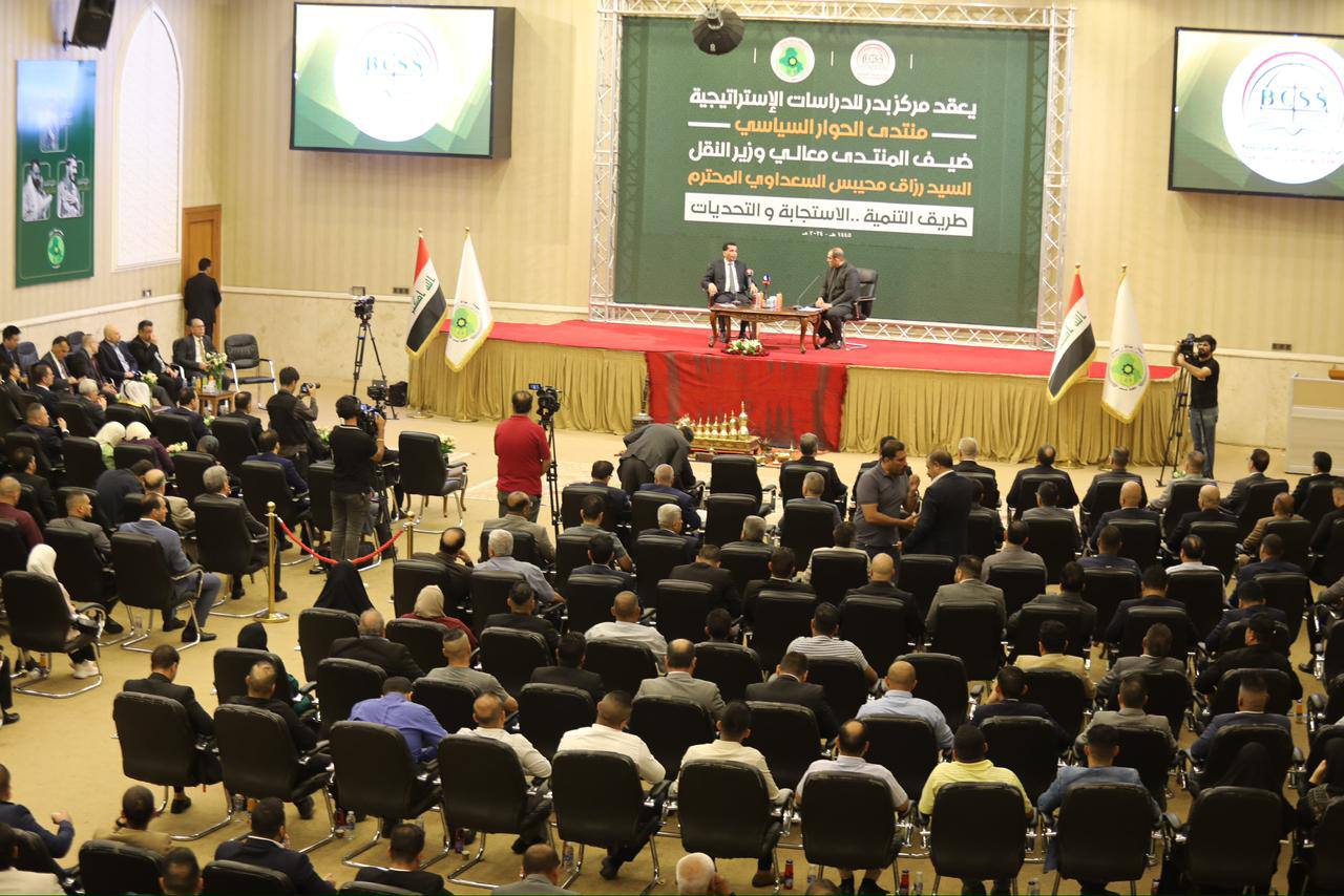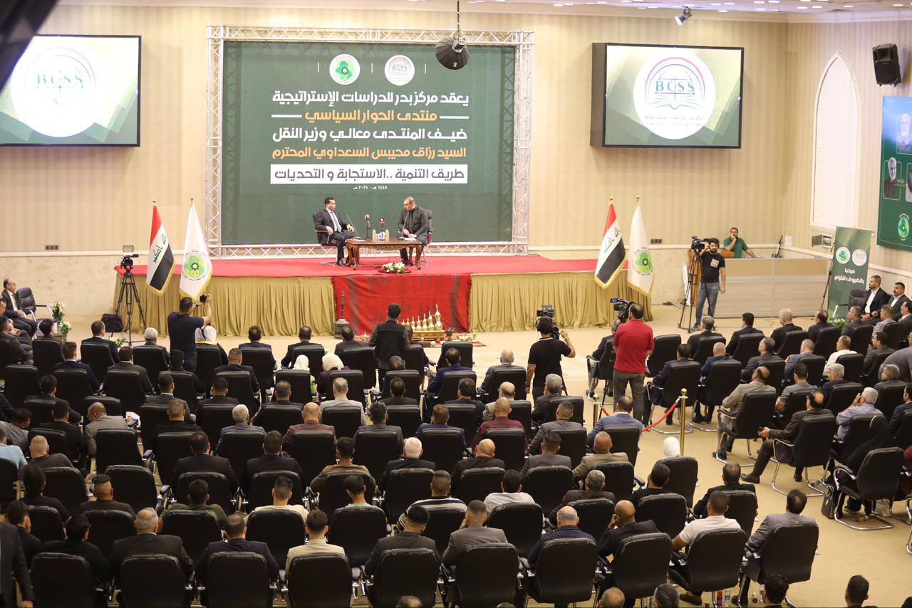 وذكر بيان للوزارة، تلقت “النعيم نيوز” نسخة منه، أن “الوزير استعرض في ندوة حوارية أقامها مركز بدر للدراسات الاستراتيجية، تفاصيل وطبيعة العمل في مشروع طريق التنمية بكل مكوناته الرئيسة، بدءاً بميناء الفاو الكبير ومساري السكة الحديد، والطريق البري السريع”.