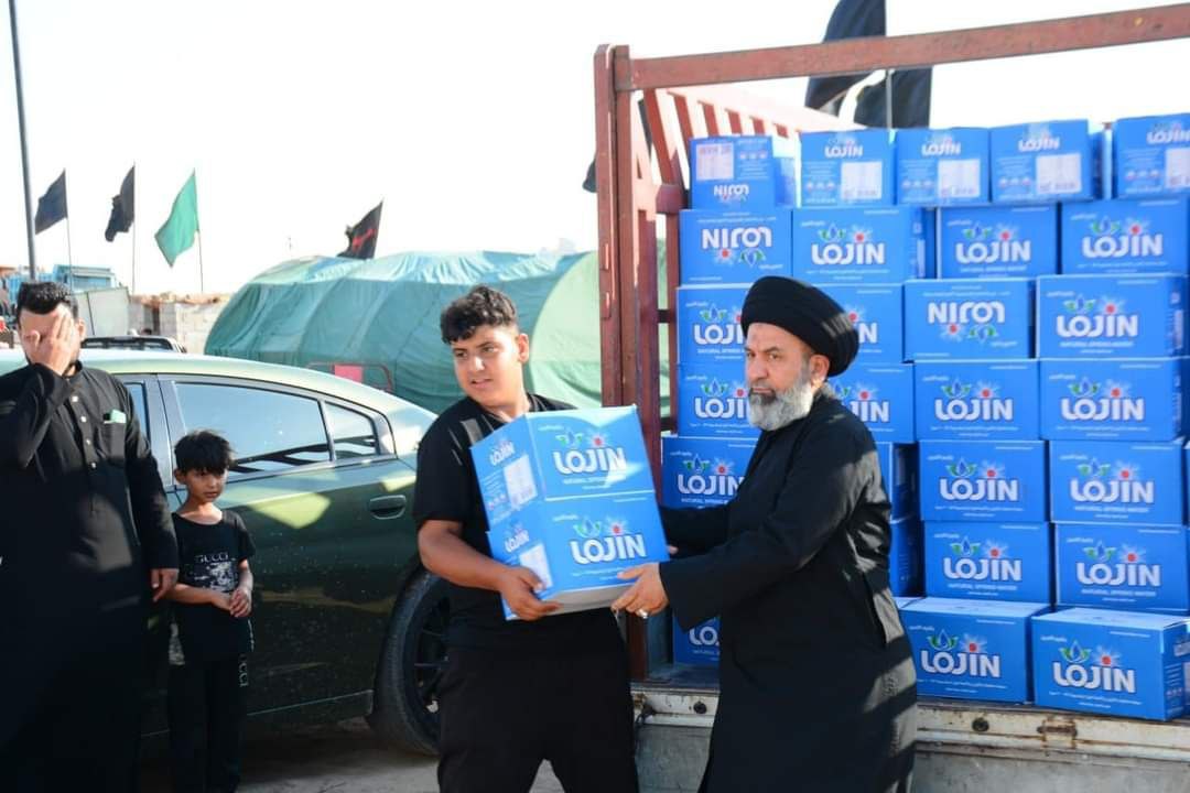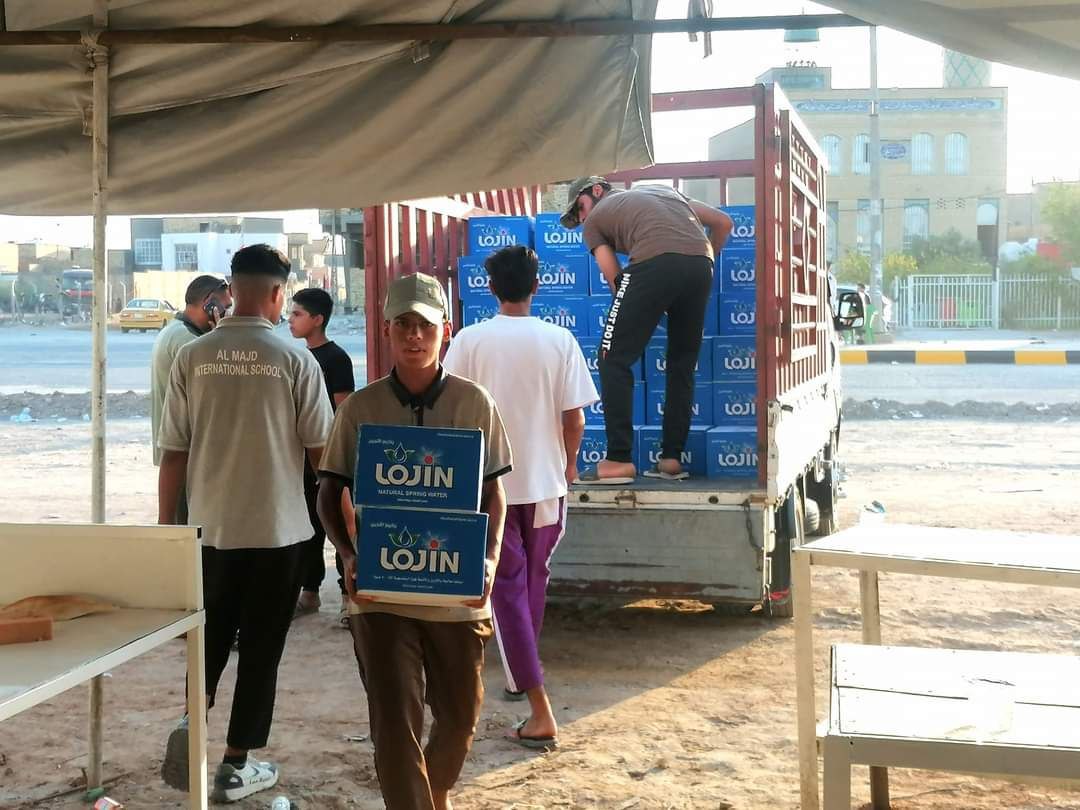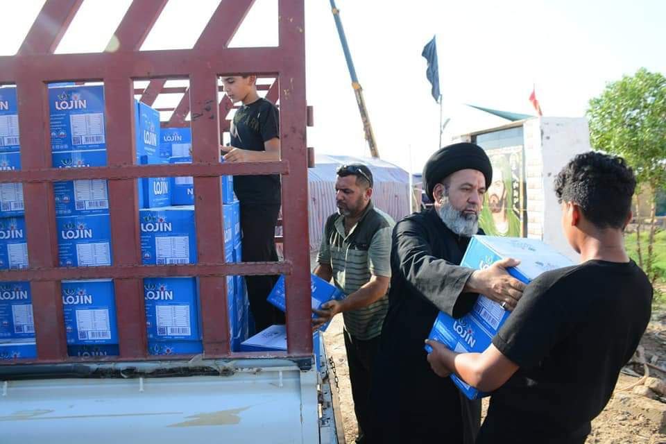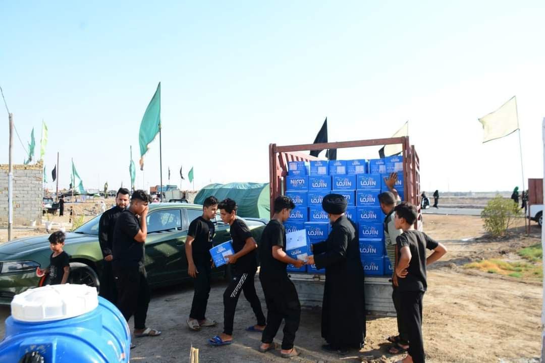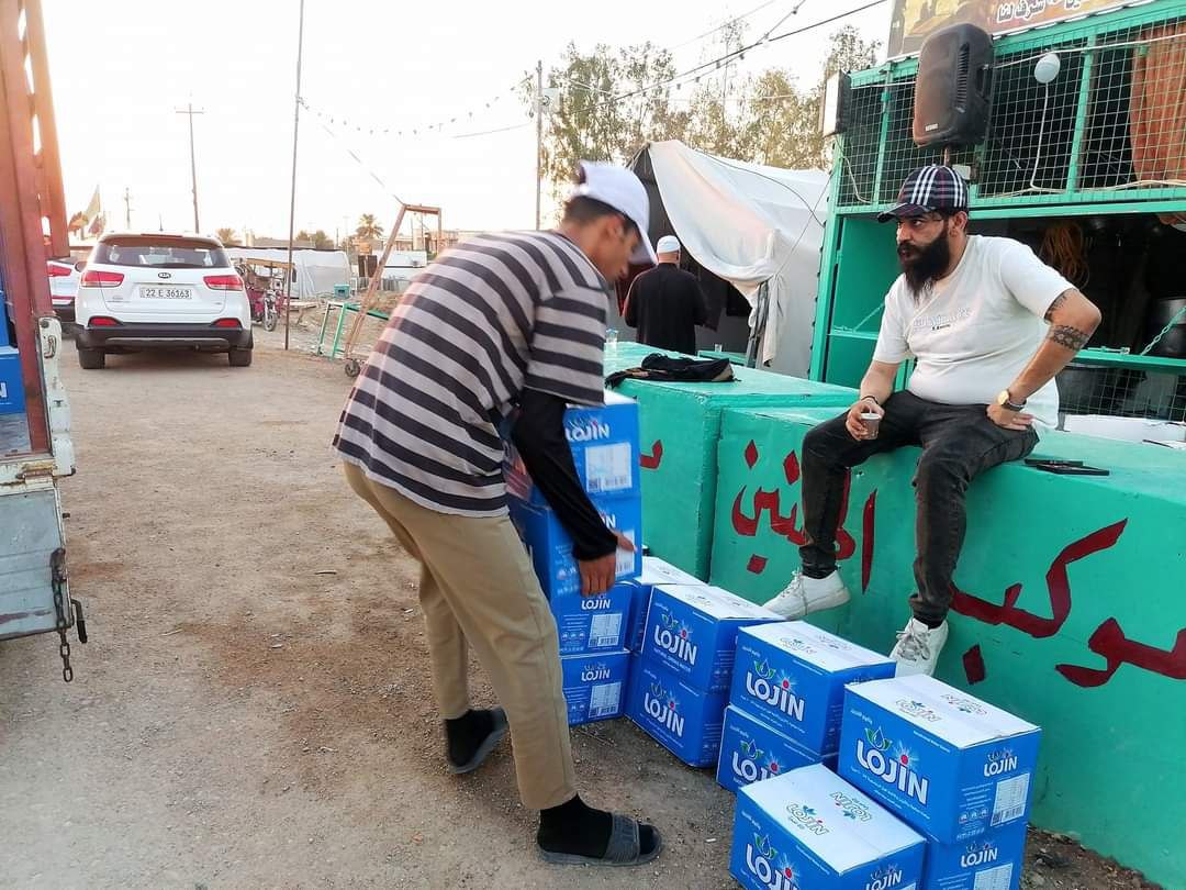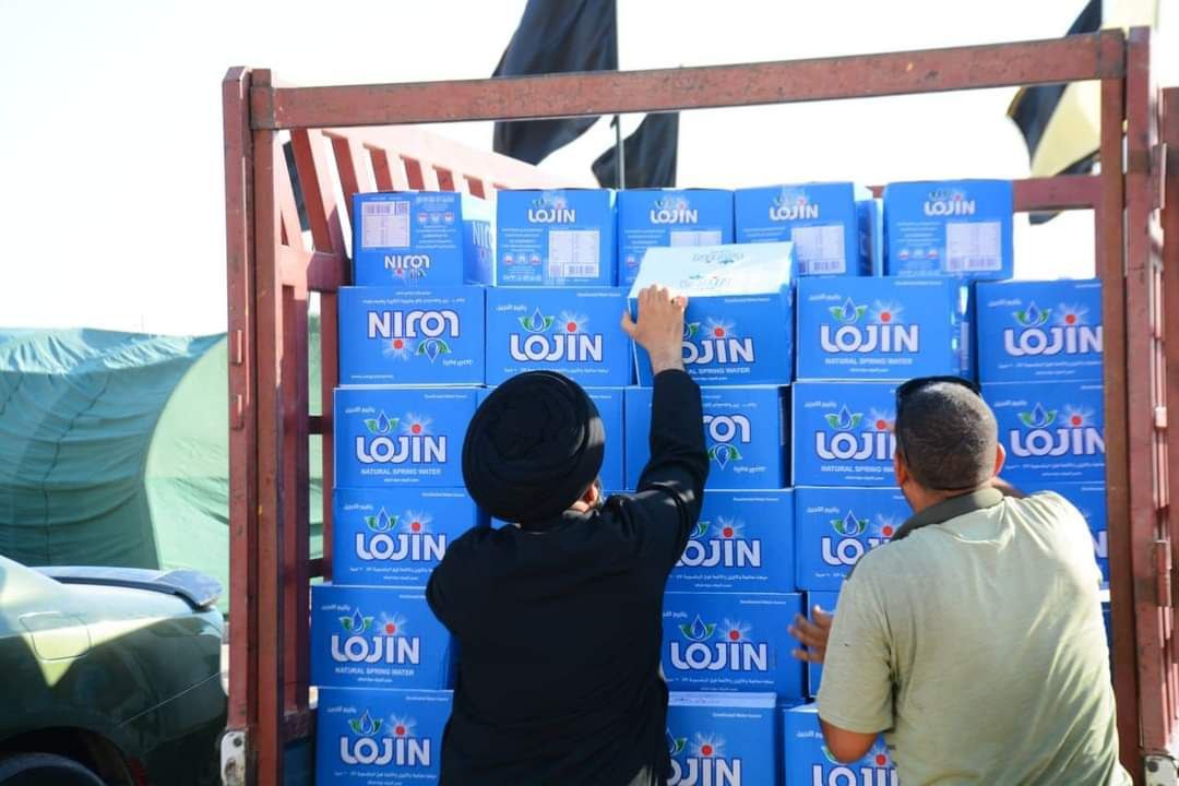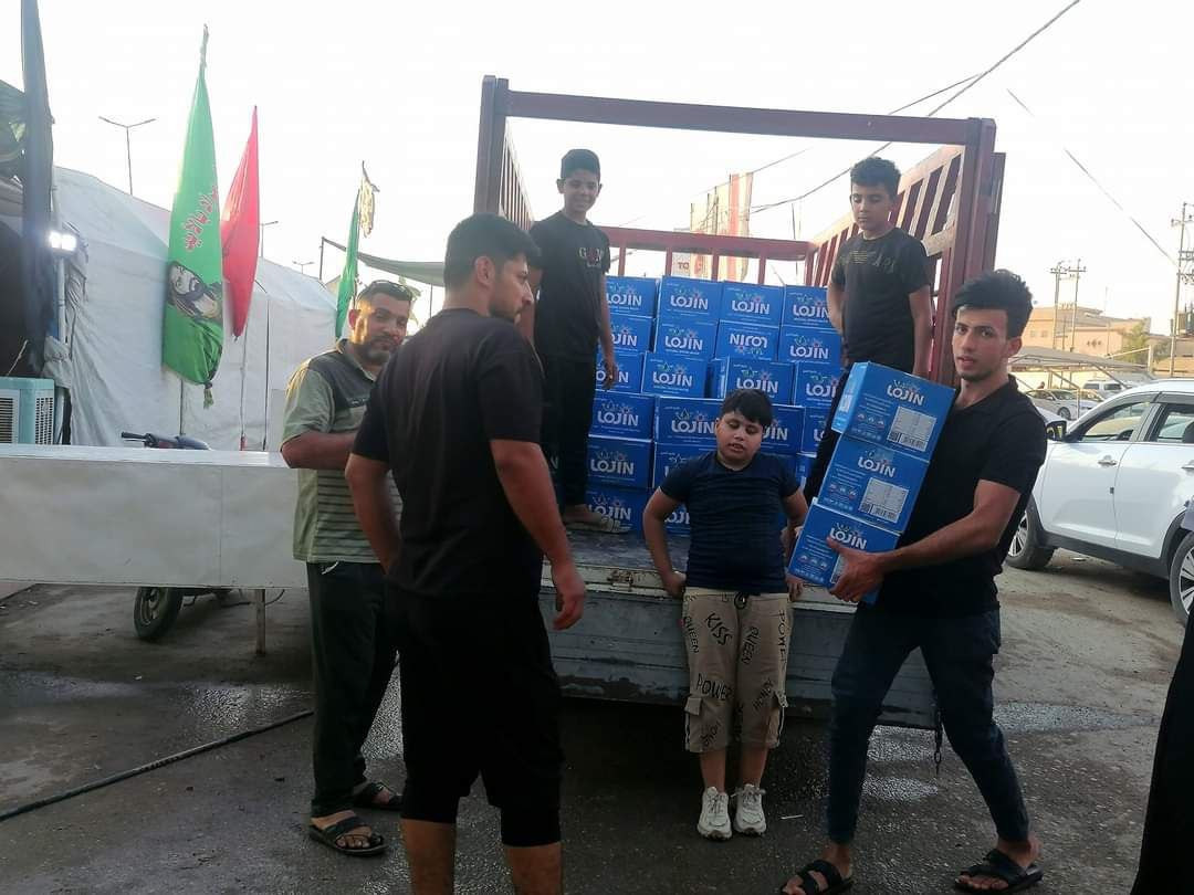 كرم السجاد في الديوانية توزع أكثر من 2000 كرتونة مياه ومواد غذائية للمواكب الحسينية