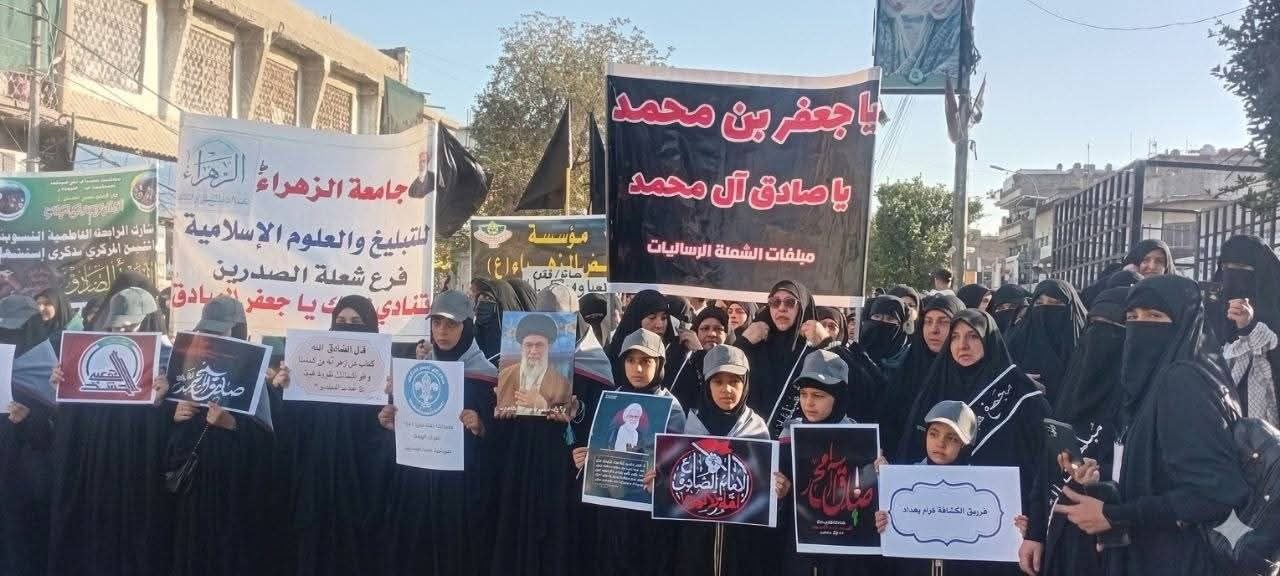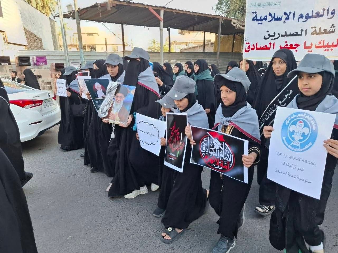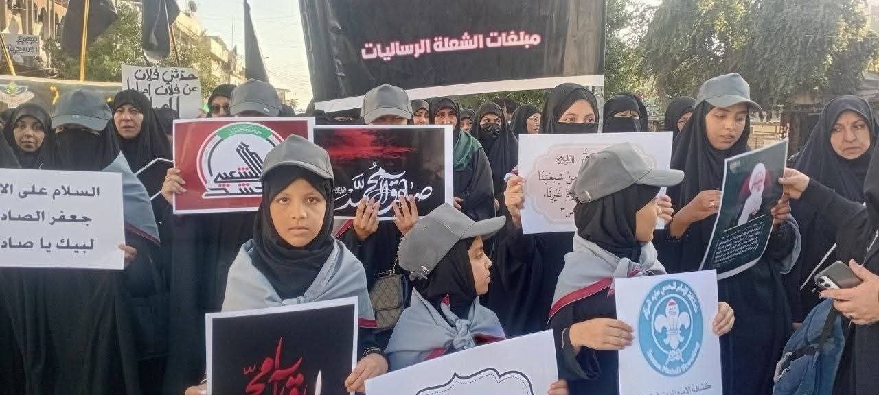 شاركت مبلغات شعلة الصدرين وجامعة الزهراء (ع)، إلى جانب كشافة الإمام المهدي (عج)، في مراسم التشييع الرمزي للإمام الصادق (ع).